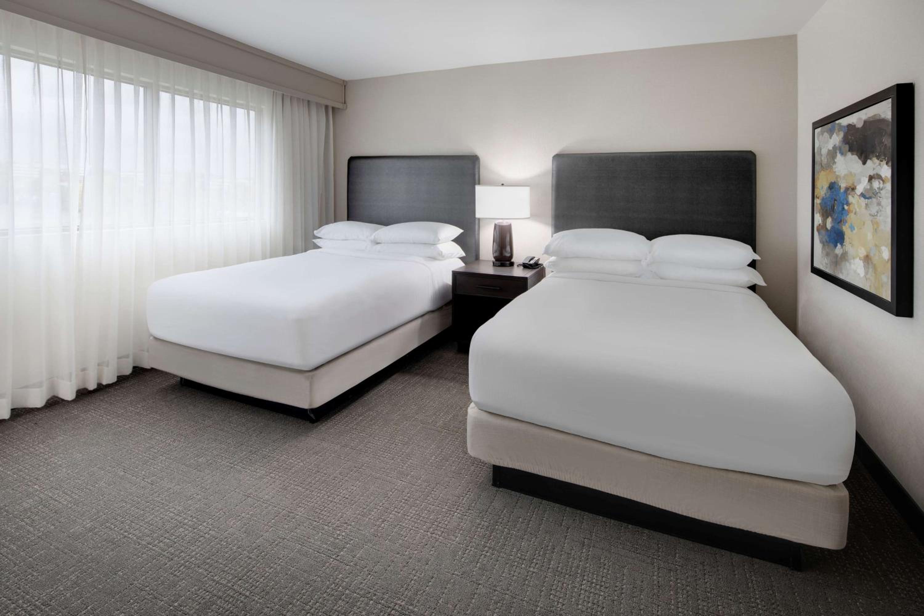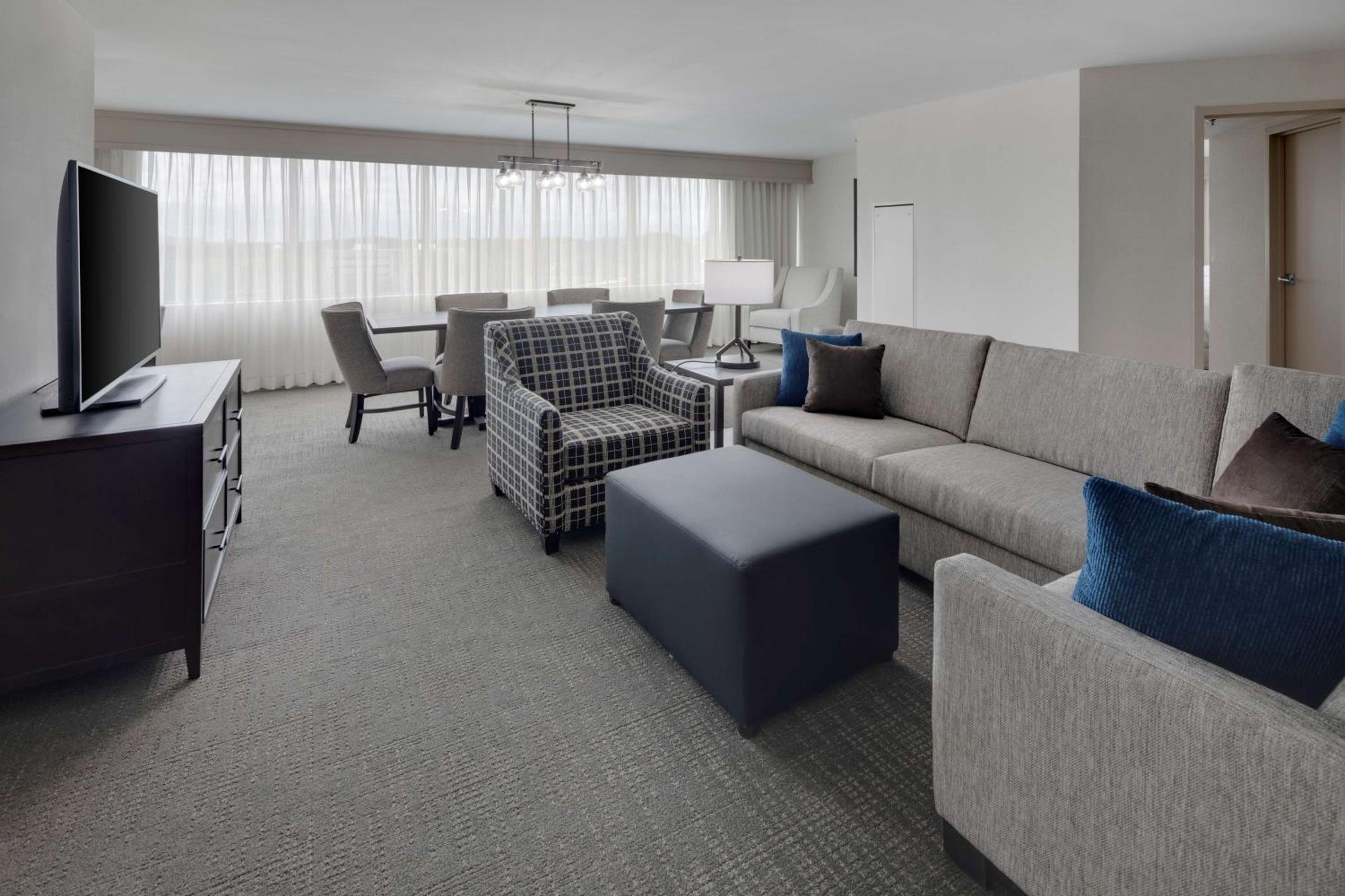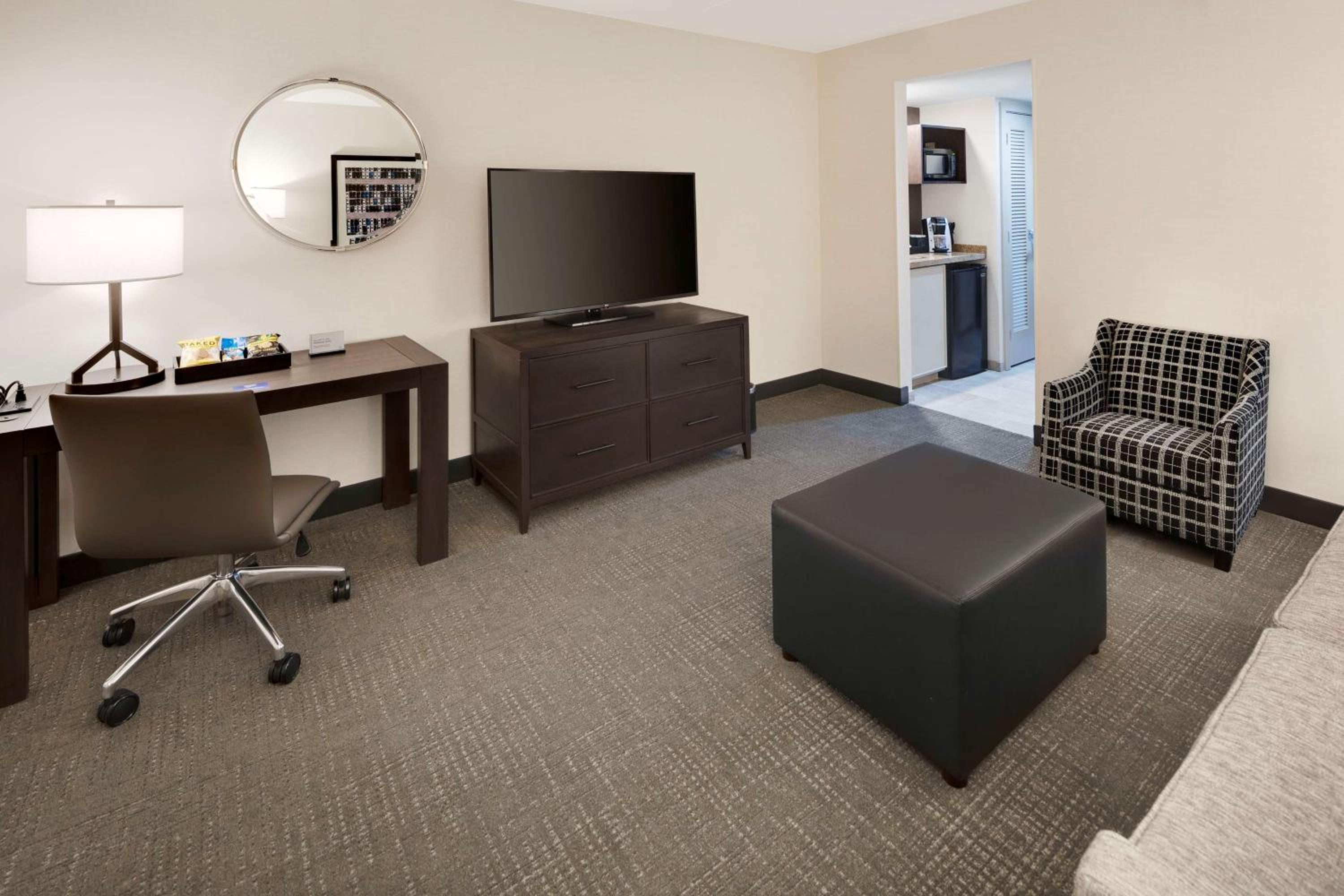 Indulge in spacious suites at the Embassy Suites by Hilton Detroit Troy Auburn Hills, offering a peaceful retreat just a short drive from Detroit city center. Enjoy the convenience of in-room microwaves and refrigerators for added comfort during your stay.