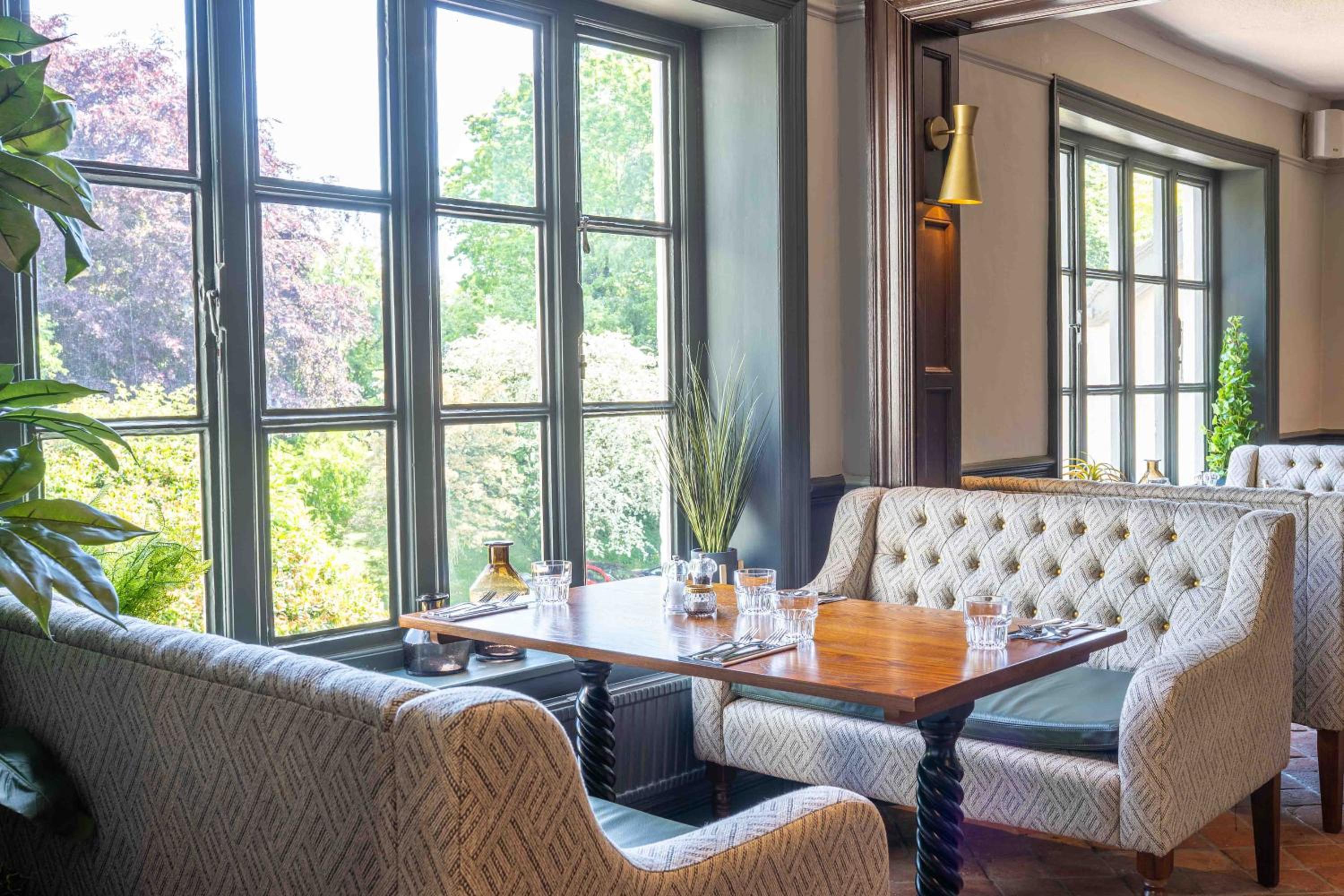 Start your day with a full English breakfast and explore a varied menu of traditional pub favorites and daily specials. Relax by the log fires, admire the oak beams, and take in the serene views of the private lake and landscaped gardens.