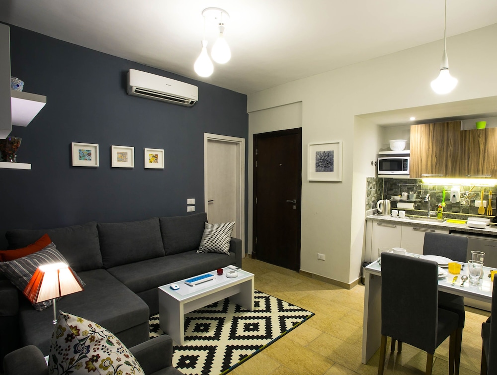 This property is like a gem! I can’t believe I used to go to Hurghada and not stay there, it’s more clean and nicely designed than 5 star hotels. Apartments are great, clean, with a mini kitchen that’s fully equipped with utensils! The place is cleaned on a daily basis. The apartment has 2 TVs and the living room one was connected to NETFLIX for its guests on new wide screen TVs which bring people together. They also offer their guests 10% discounts in Bulls restaurant just around the corner. I loved the place and will always be my go to when I go to Hurghada! ❤️