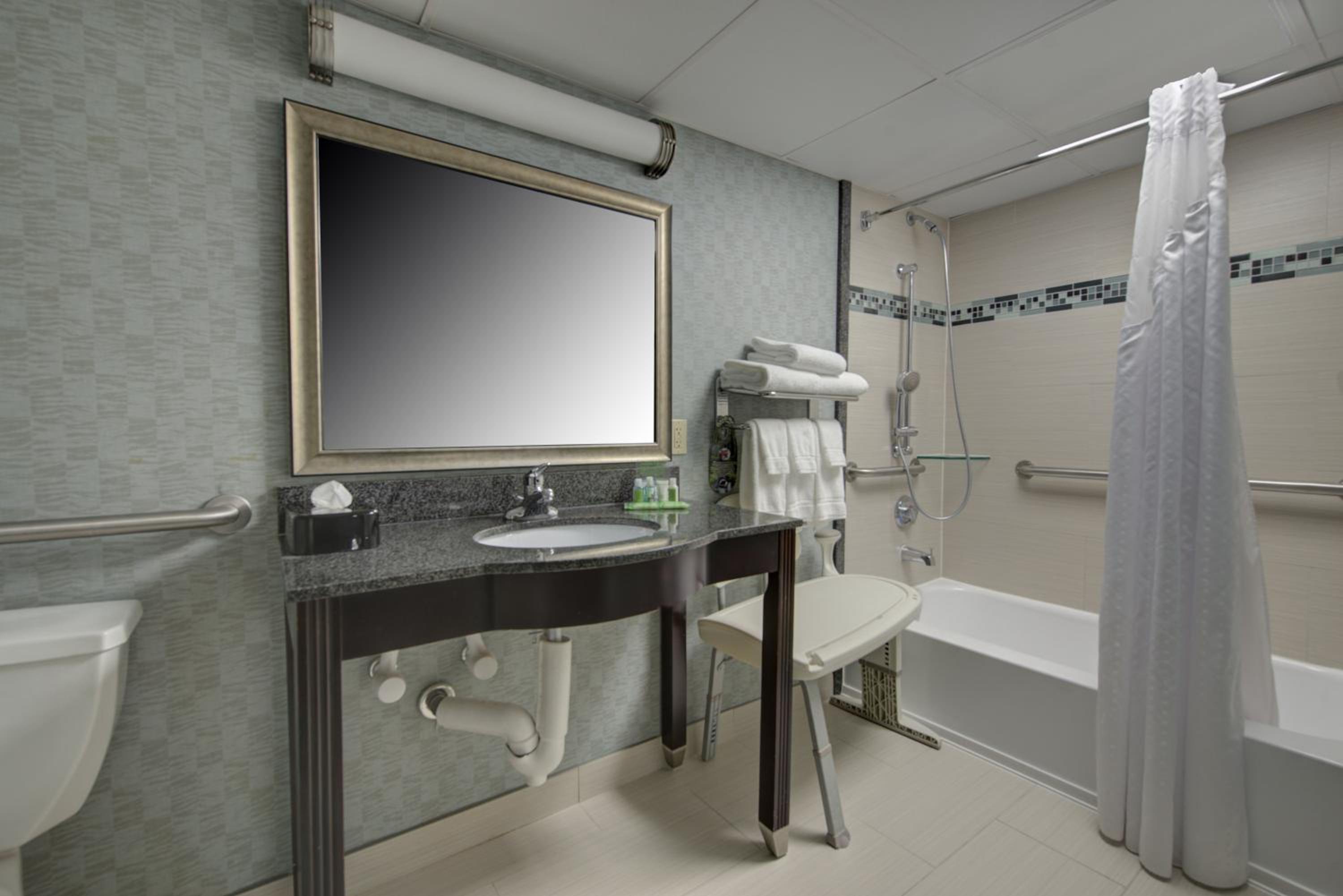 Each room at the Holiday Inn Plainview-Long Island is equipped with a work desk, satellite TV, and movie options for entertainment. Guests can start their day with a complimentary morning newspaper and a freshly brewed cup of coffee from the in-room coffee maker.
