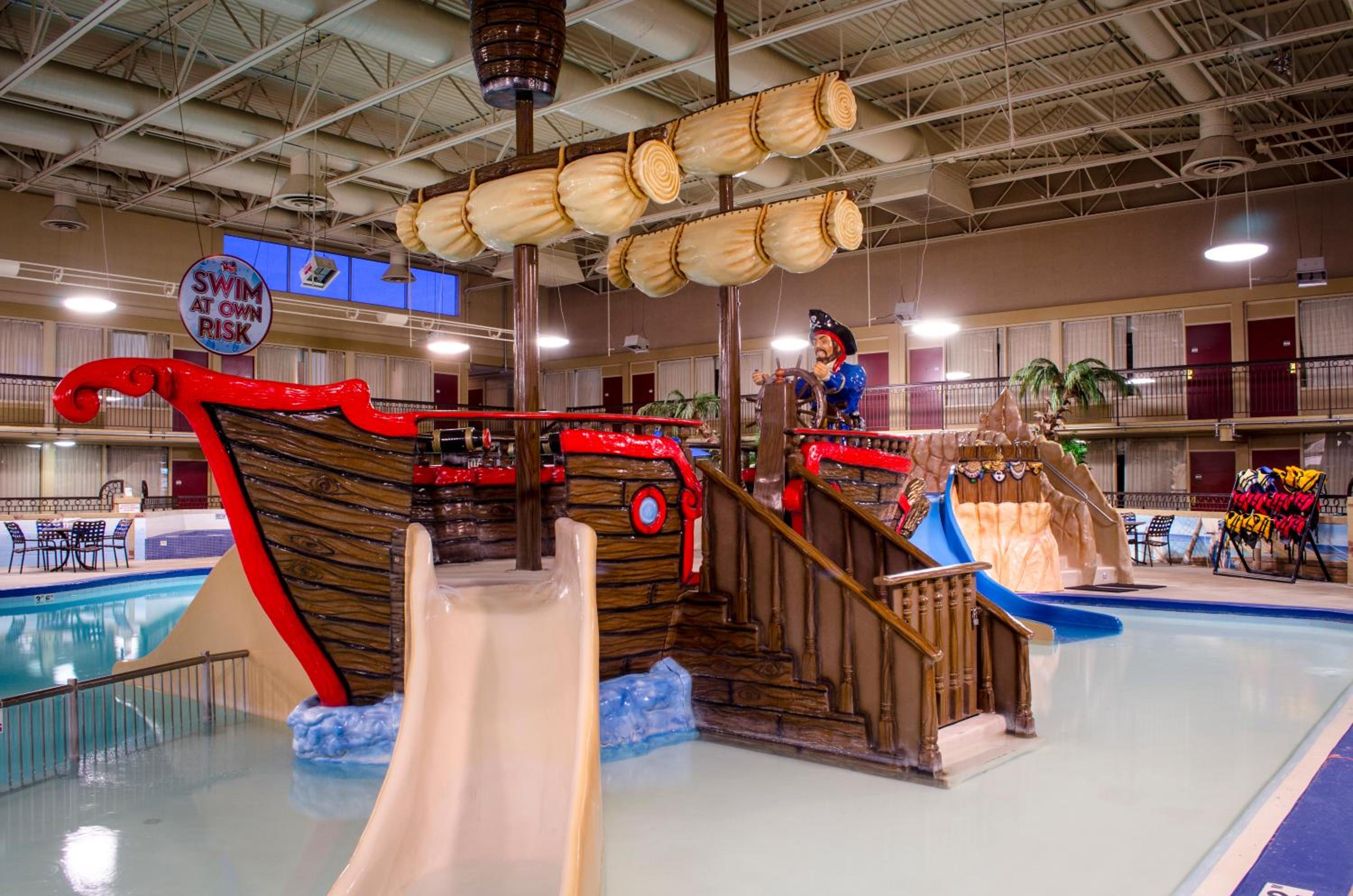Experience fun and excitement at our 13,000 square foot water park and casino right on the property. Enjoy water slides, a large swimming pool, and gaming entertainment during your stay.