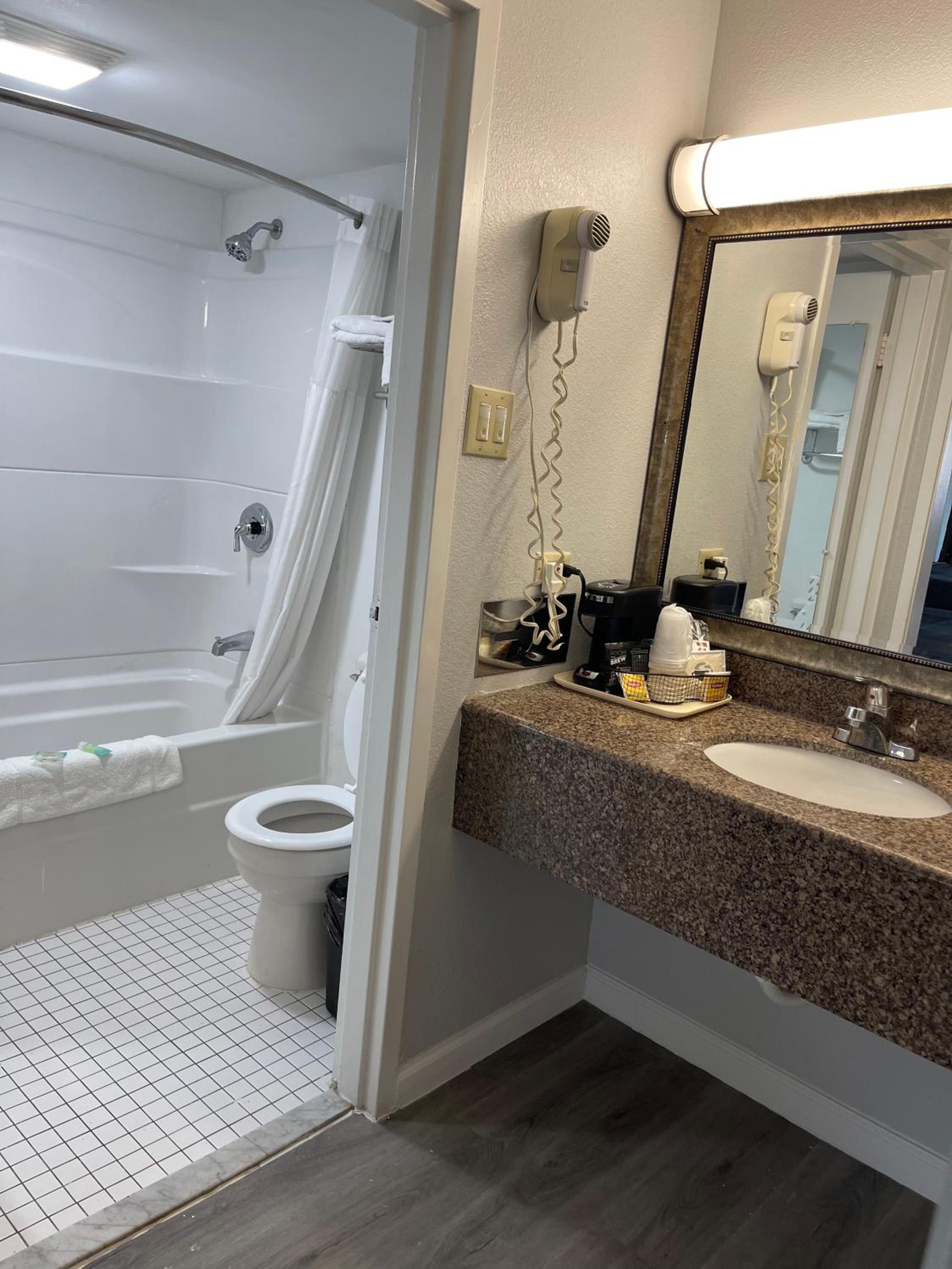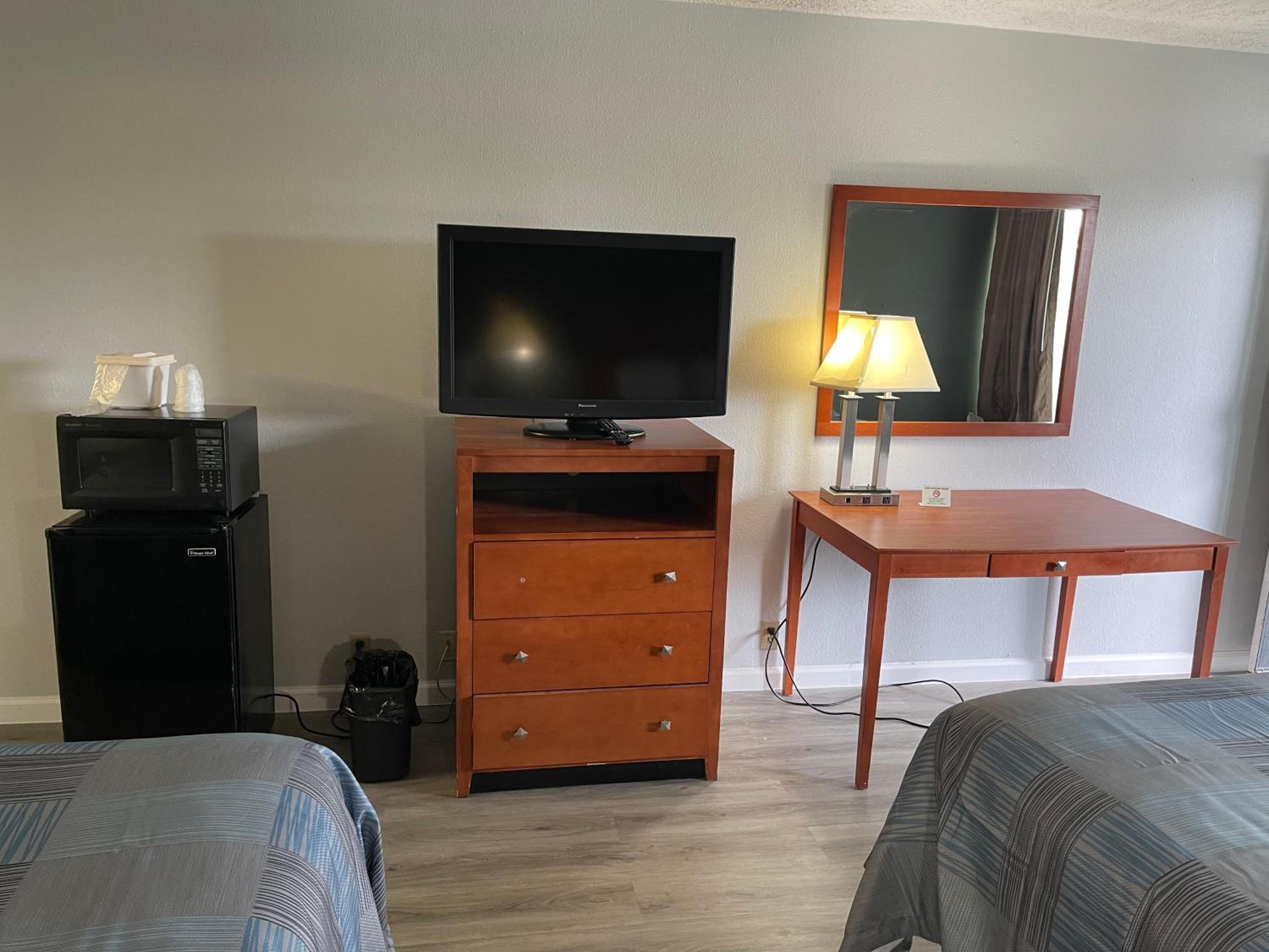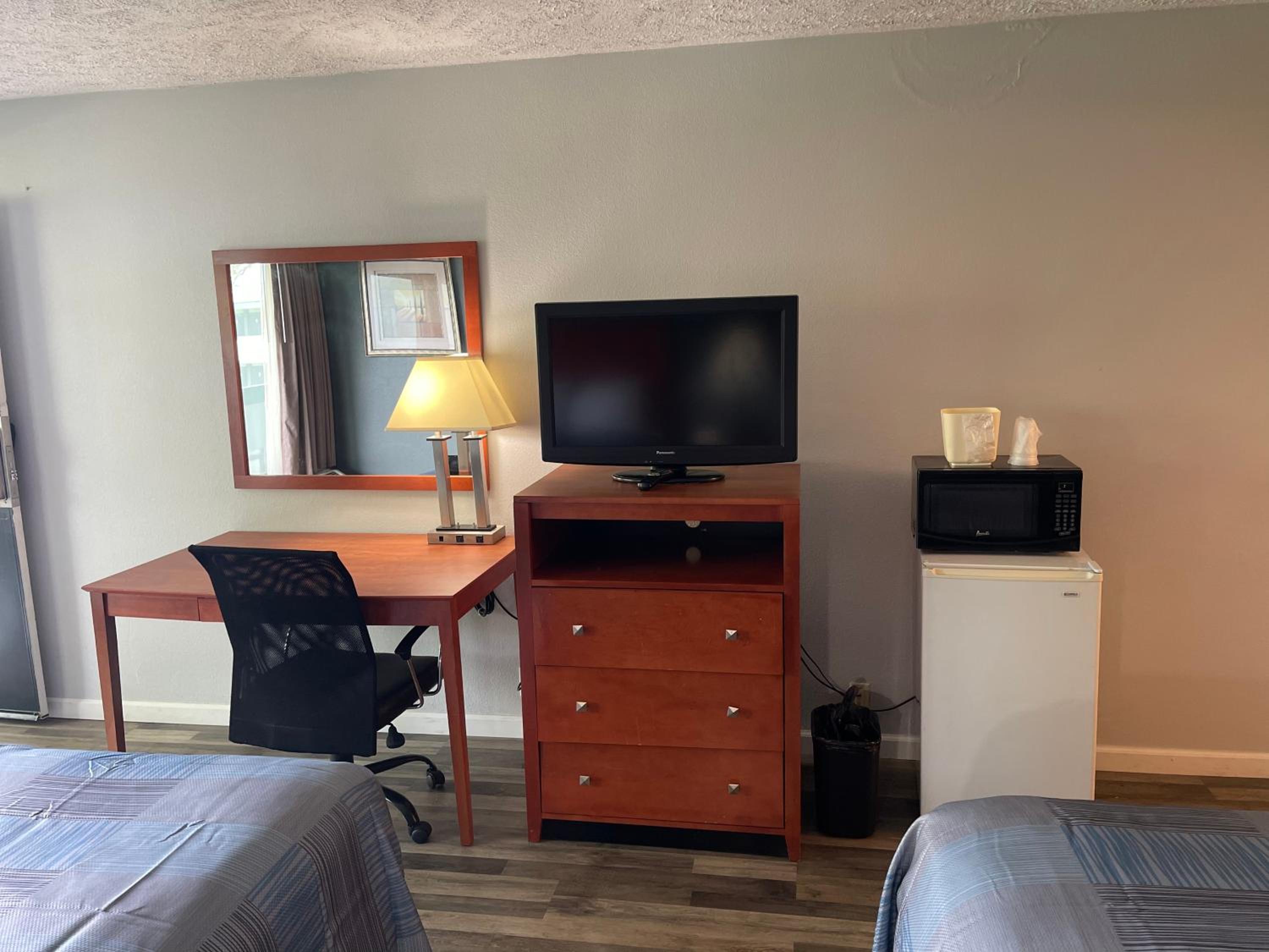 I didn't stay a night. When we arrived there the guy behind the check- in counter was very rude! He put the key card on the counter with force and he didn't tell us where the room was. When we went to the room, it was FILTHY!! A dead lantern fly was on the floor smashed in the carpet and the tub was filthy with strings of pubic hair in it! We went back to the front office to ask for a refund..the guy said "No" but offer another room. The second room reeked of marijuana! The hotel SUCKED and this was my birthday weekend. My birthday weekend was ruined!!!!! I didn't stay, my husband drove me back to our home which was 3 hours away. My husband drove me down there and basically turned around shortly after arriving at that "SO CALLED" hotel/motel!