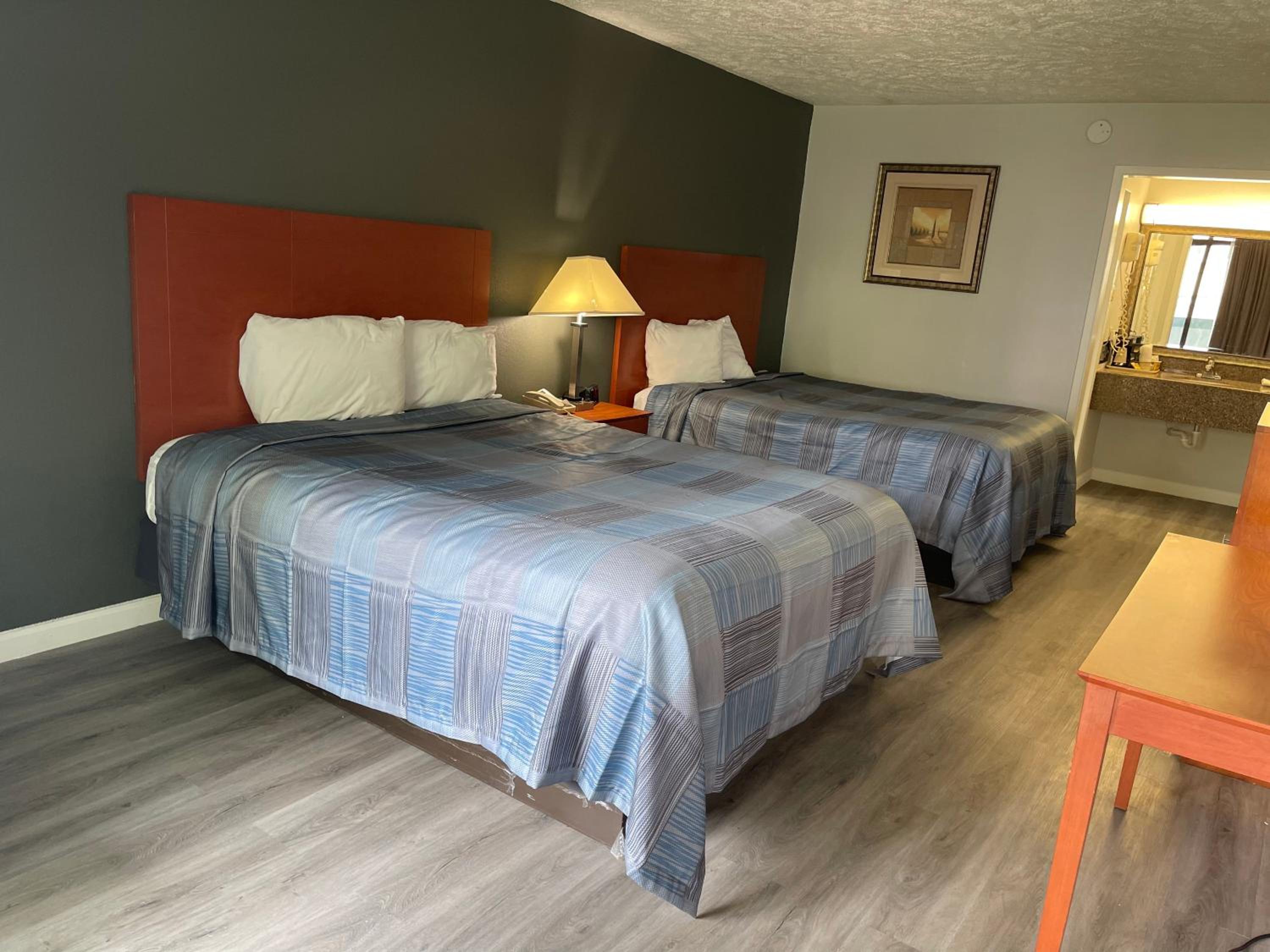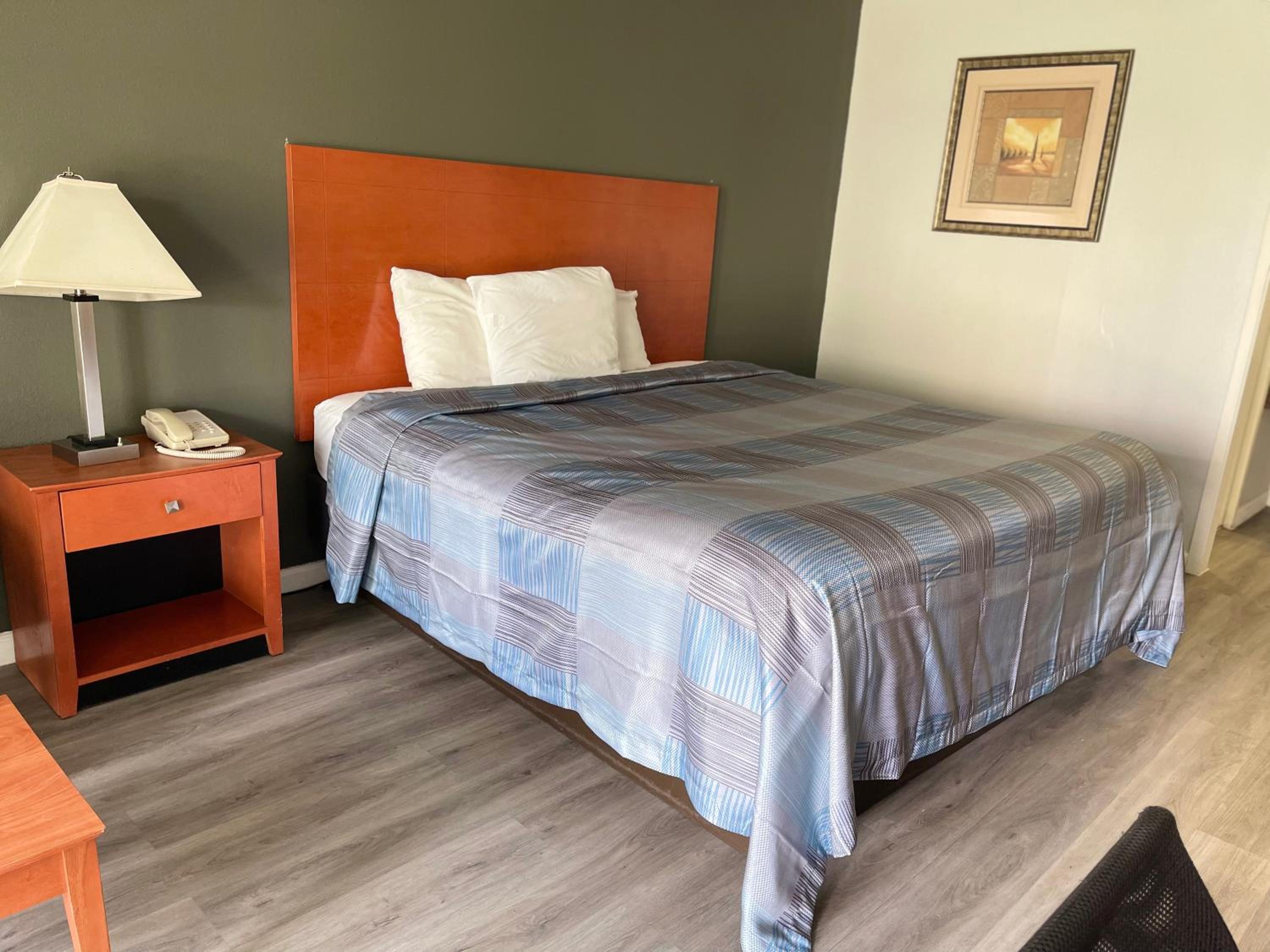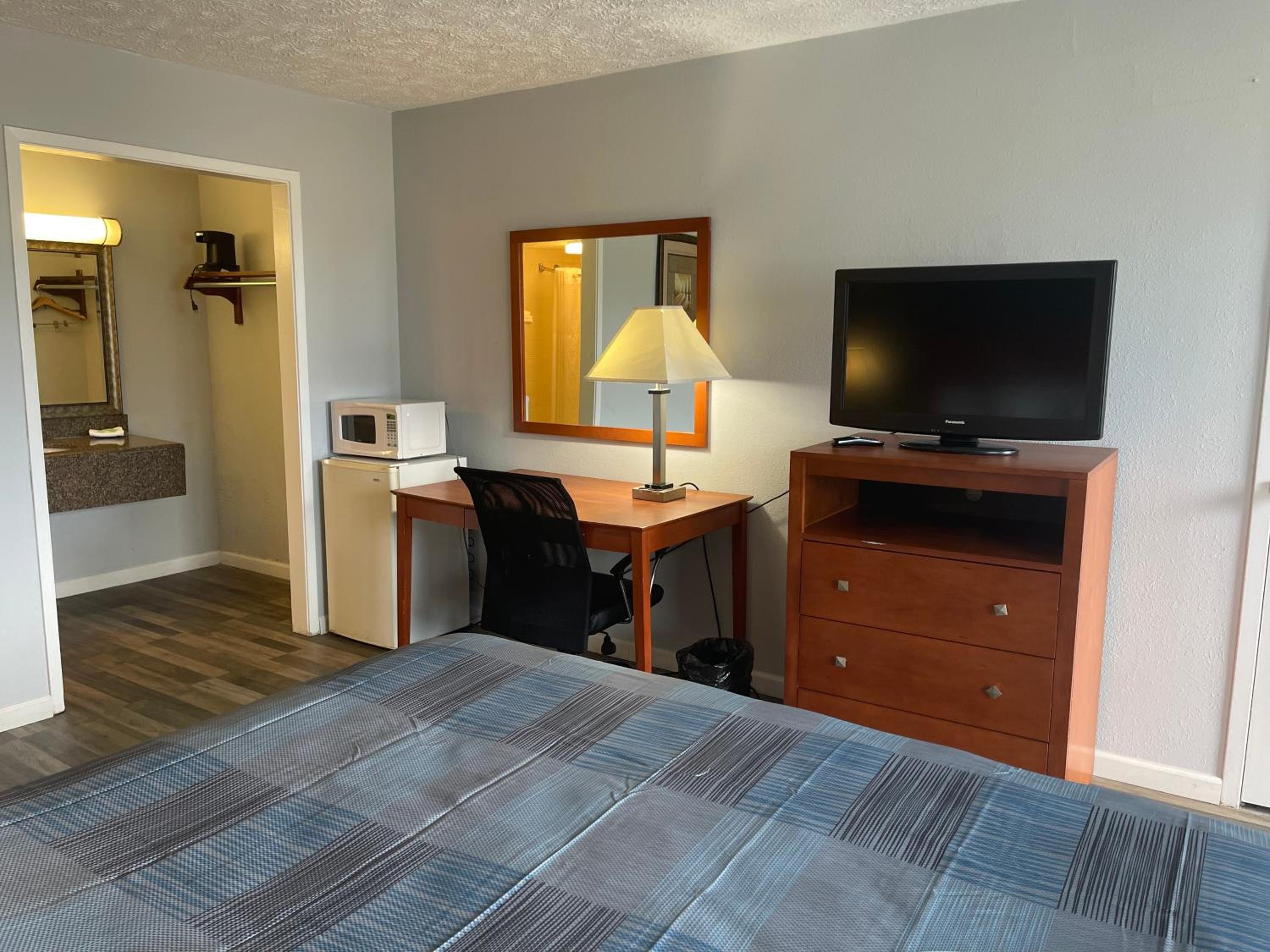 I didn't stay a night. When we arrived there the guy behind the check- in counter was very rude! He put the key card on the counter with force and he didn't tell us where the room was. When we went to the room, it was FILTHY!! A dead lantern fly was on the floor smashed in the carpet and the tub was filthy with strings of pubic hair in it! We went back to the front office to ask for a refund..the guy said "No" but offer another room. The second room reeked of marijuana! The hotel SUCKED and this was my birthday weekend. My birthday weekend was ruined!!!!! I didn't stay, my husband drove me back to our home which was 3 hours away. My husband drove me down there and basically turned around shortly after arriving at that "SO CALLED" hotel/motel!