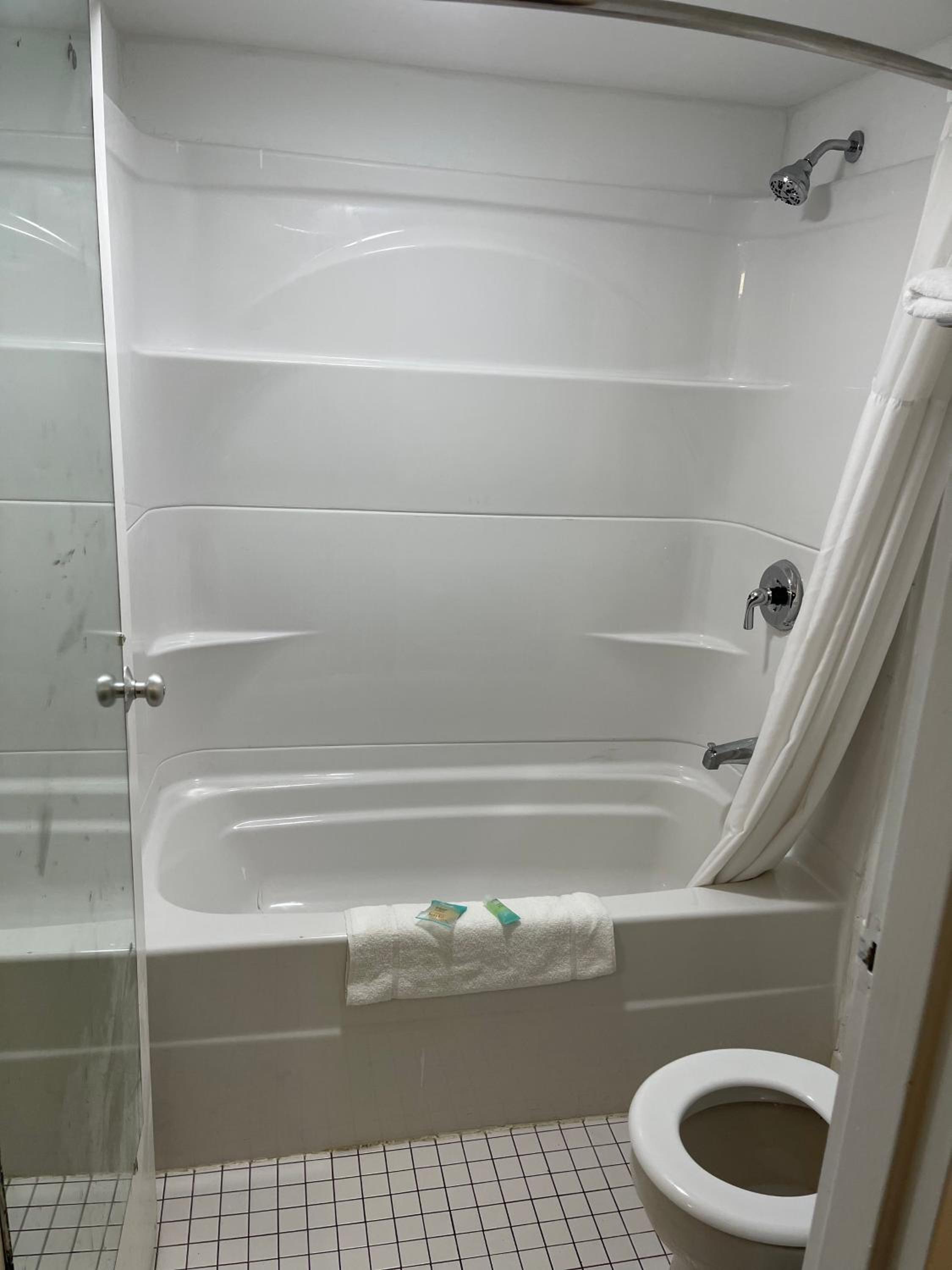 Either the water was super hot or super cold, no in between. I called front desk and apparently after you go in a room theres no chaning rooms "their policy". Towels are white originally, towels i got are white with black and brown streaks. Toilet cap was broken, felt like i was doing the "chacha" dance and it doesnt even flush as it should. Good luck if you come here.