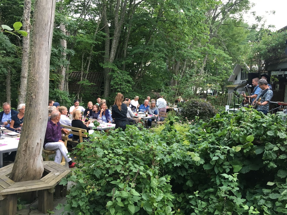 Smuk og idyllisk gårdhave. Dog noget være fis, at man ikke må nyde egen mad og drikke i gårdhaven. Heller ikke som gæst på vandrehjemmet. Det er jo fuldstændig fjollet.