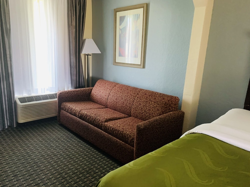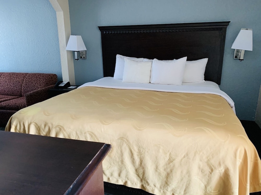 had to wait to check in for 45 minutes because of some issue with the person in front of us..'no signal' on tv, so couldn't watch that..2 bugs in bathtub..promised a wake-up call that never happened..carpet was dirty..no smoking room had big cigarette burn in bedspread..bit on the leg by bedbug..not the hotel or room showed in photos before booking..no Quality here..BEWARE BEFORE YOU BOOK THIS PLACE..never again