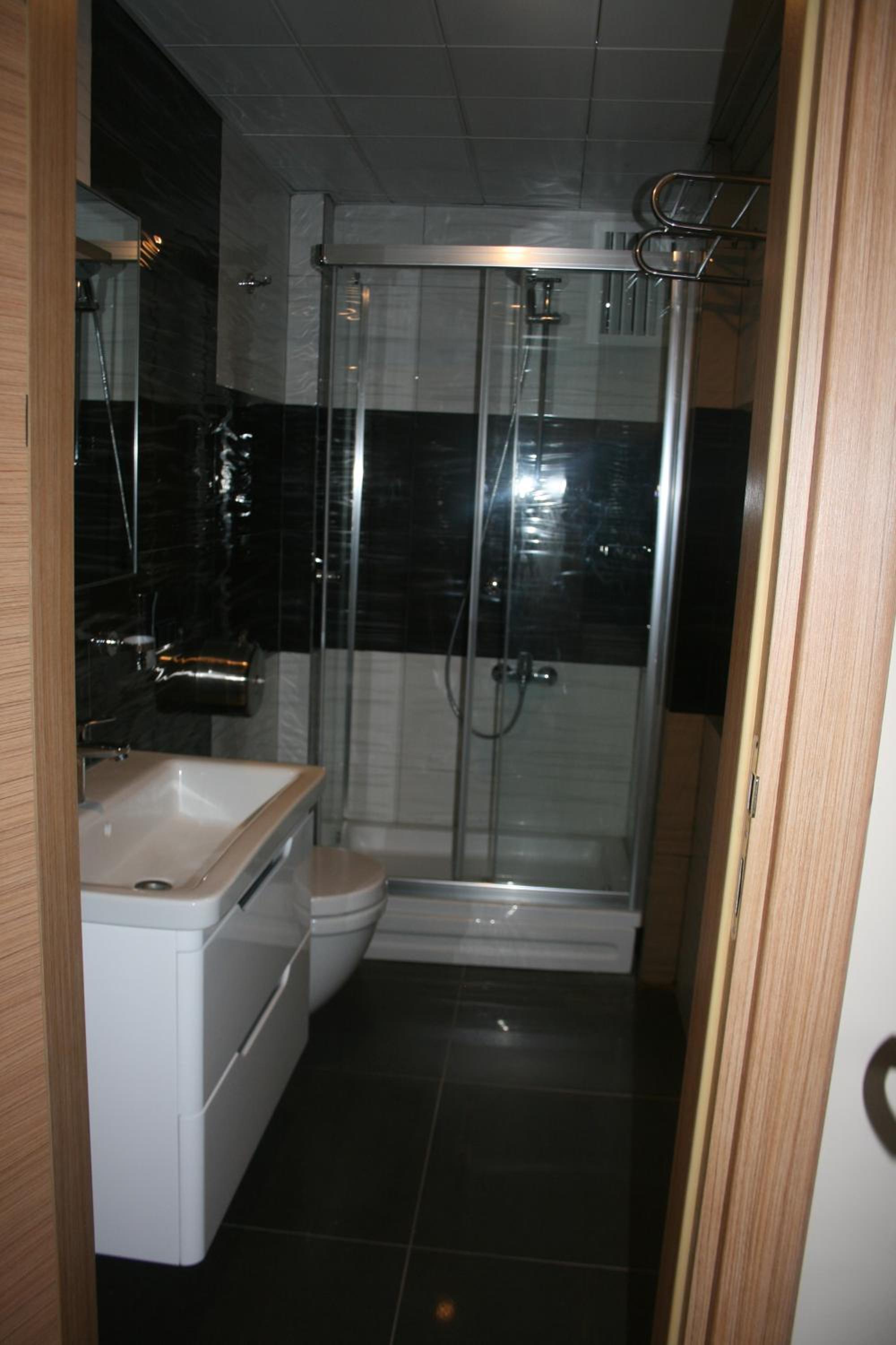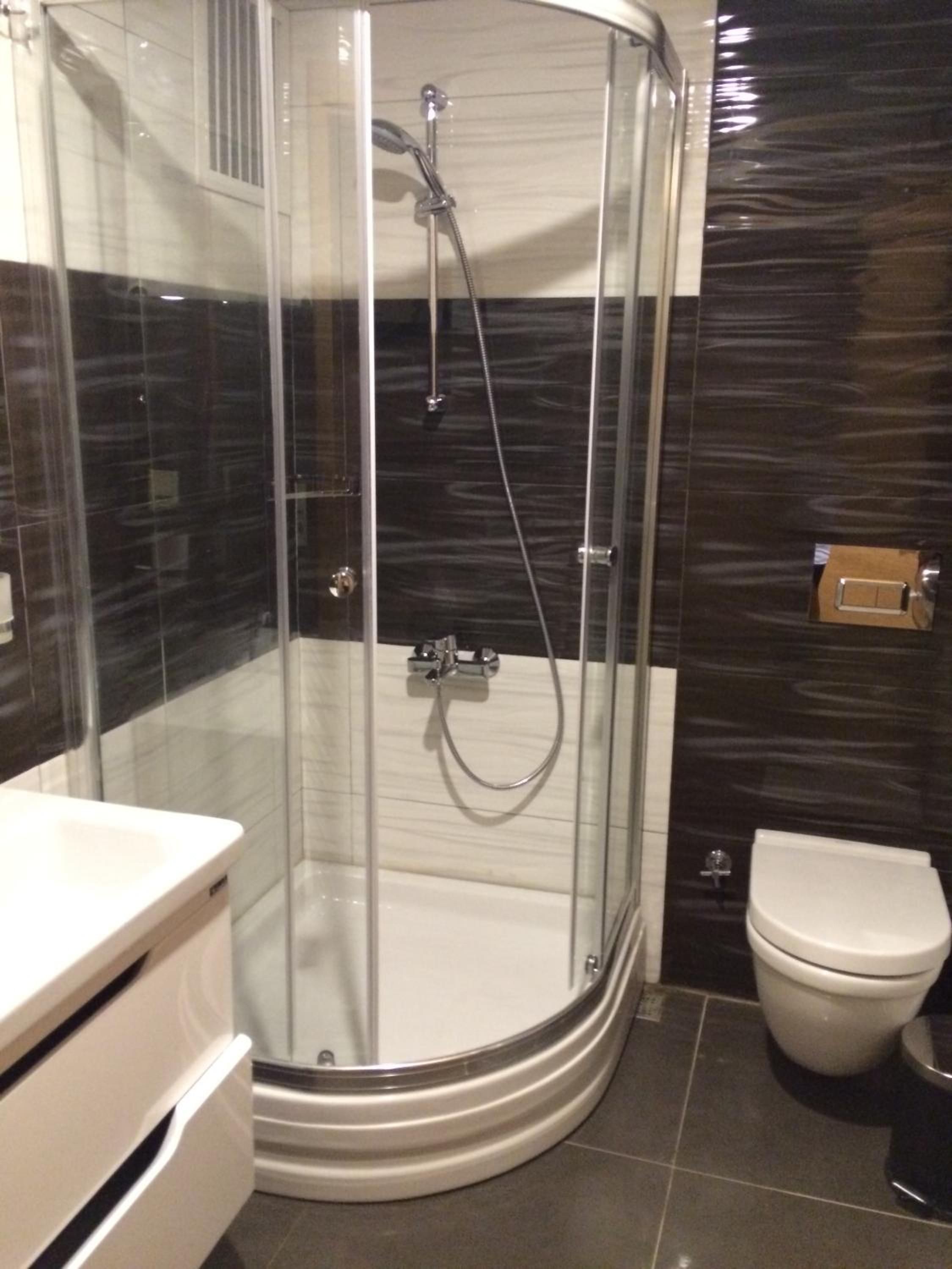 Shower was small and you wet the toilet in the process.