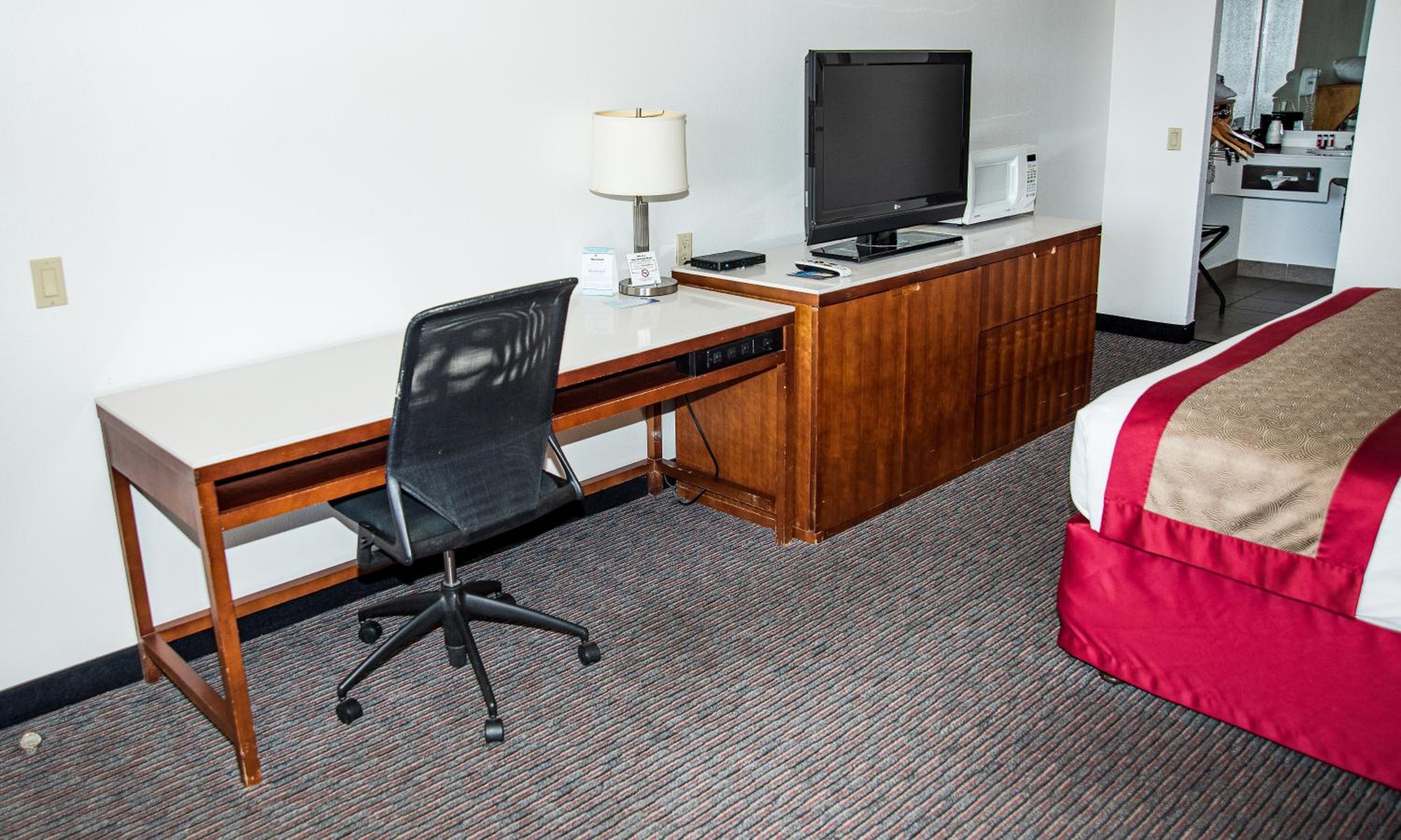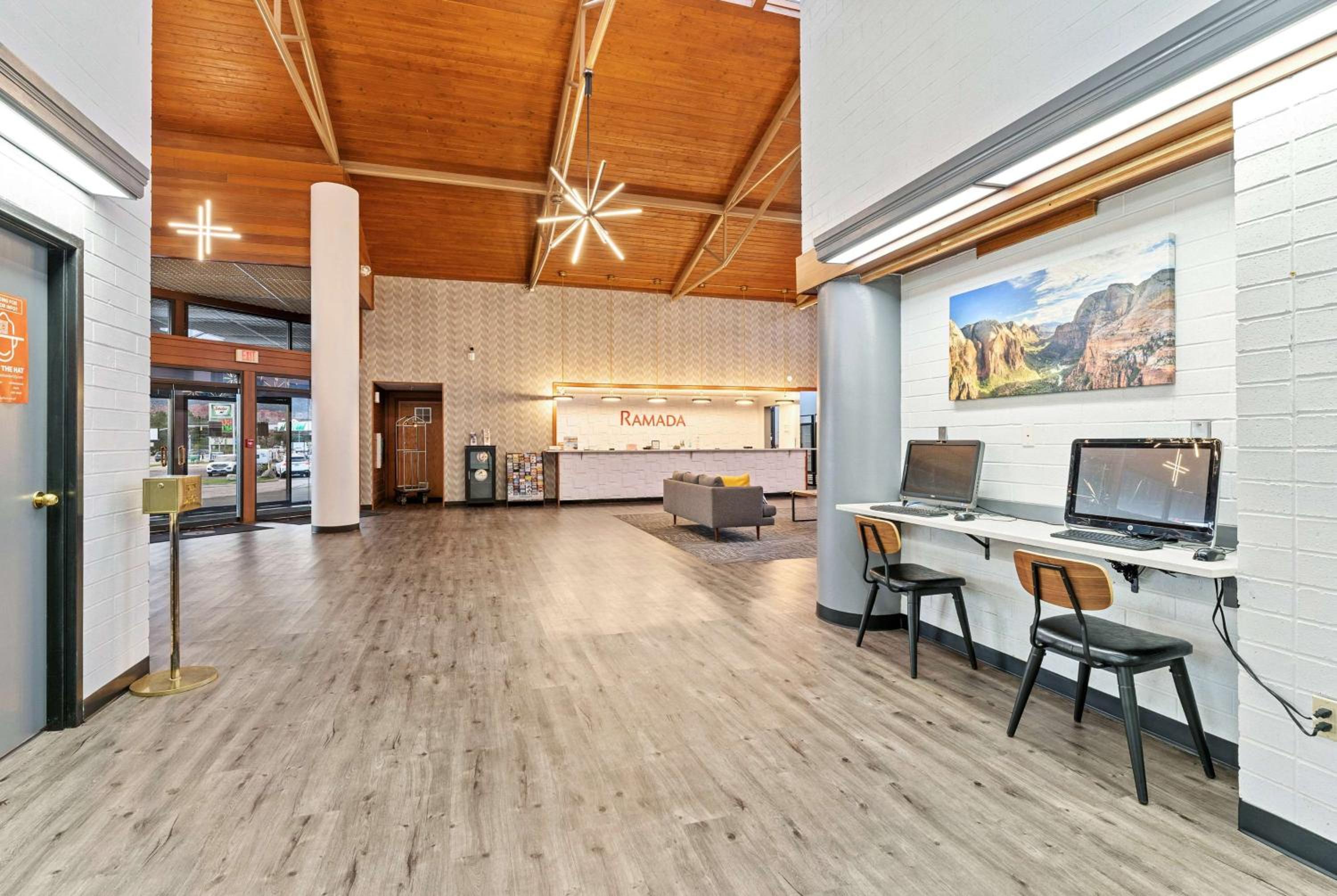 The Ramda Inn, in Cedar City, Utah is clean and has nice rooms. The desks are large enough for computers, mobile printers, and other work things. I highly recommend the downstairs rooms on the backside of the hotel for convenience, re: you can drive up to the rooms and no hauling luggage and/or work things up and down stairs.
