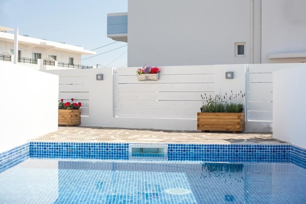 Lovely apartments at this hotel. The staff are very friendly & welcoming & they will help you whenever you ask. Breakfast is basic but that was fine for us (cakes, toast, eggs, cheese etc). Our private pool was lovely, sun on it all day. The interior is open plan in the apartment with a kitchenette inside. The bed was extremely comfortable and we got a good nights sleep. The hotel is a short walk into Faliraki (10 mins max), lots or tavernas to choose from. We recommend Iama & Acropolis. We would definitely come back!