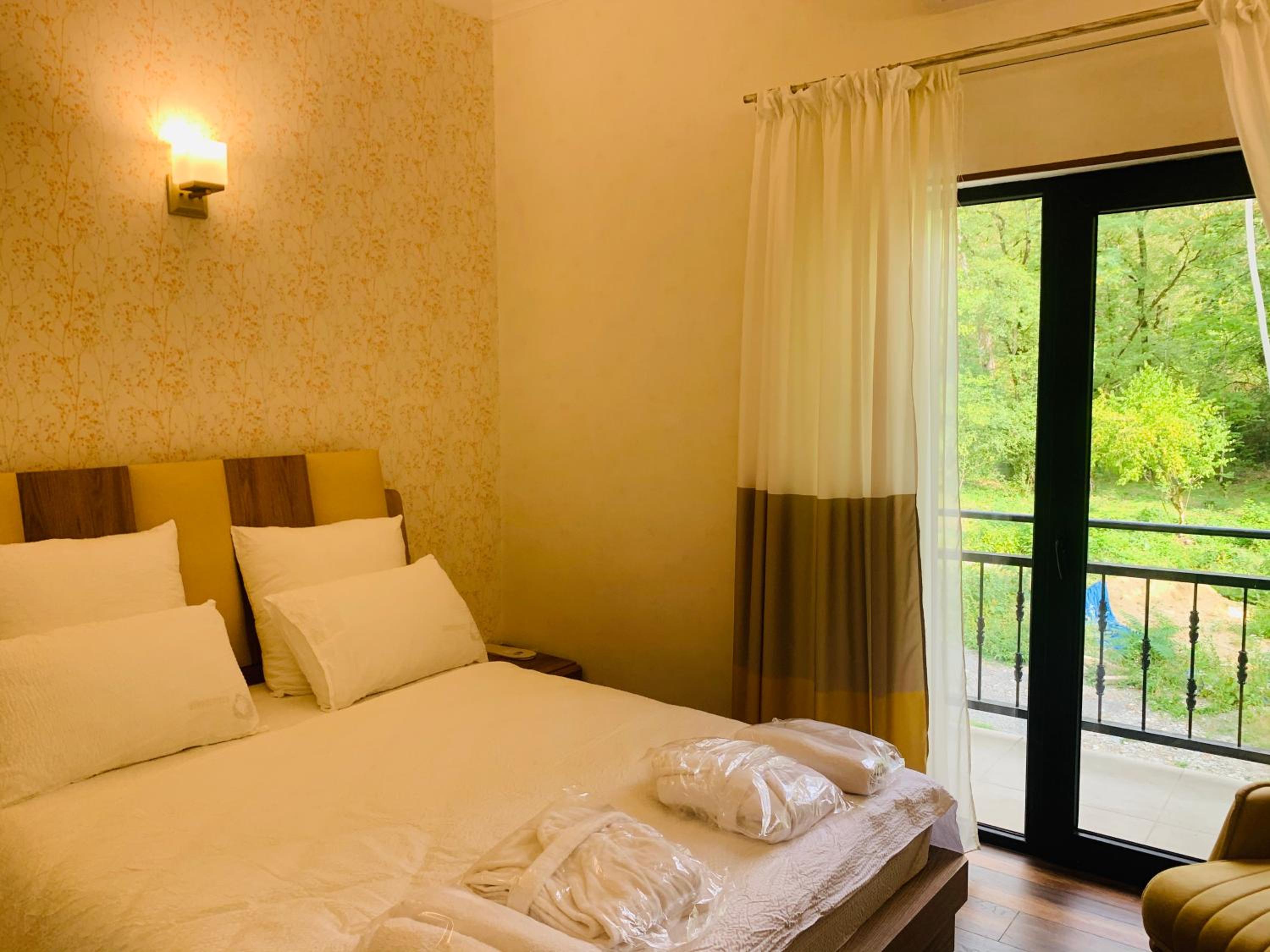 Расположение - практически у входа в Lagodekhi Park. Просторный номер, чисто, кровати удобные, работающая сантехника, халаты. Большой бассейн (полотенца выдают).