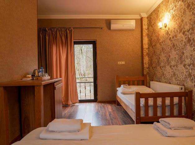 Experience a stay of comfort and elegance at Wald Hotel Lagodekhi Rooms. Each room is equipped with modern amenities such as air conditioning, a flat-screen TV, and a cozy seating area. Some units even feature a private balcony to enjoy the scenic views.