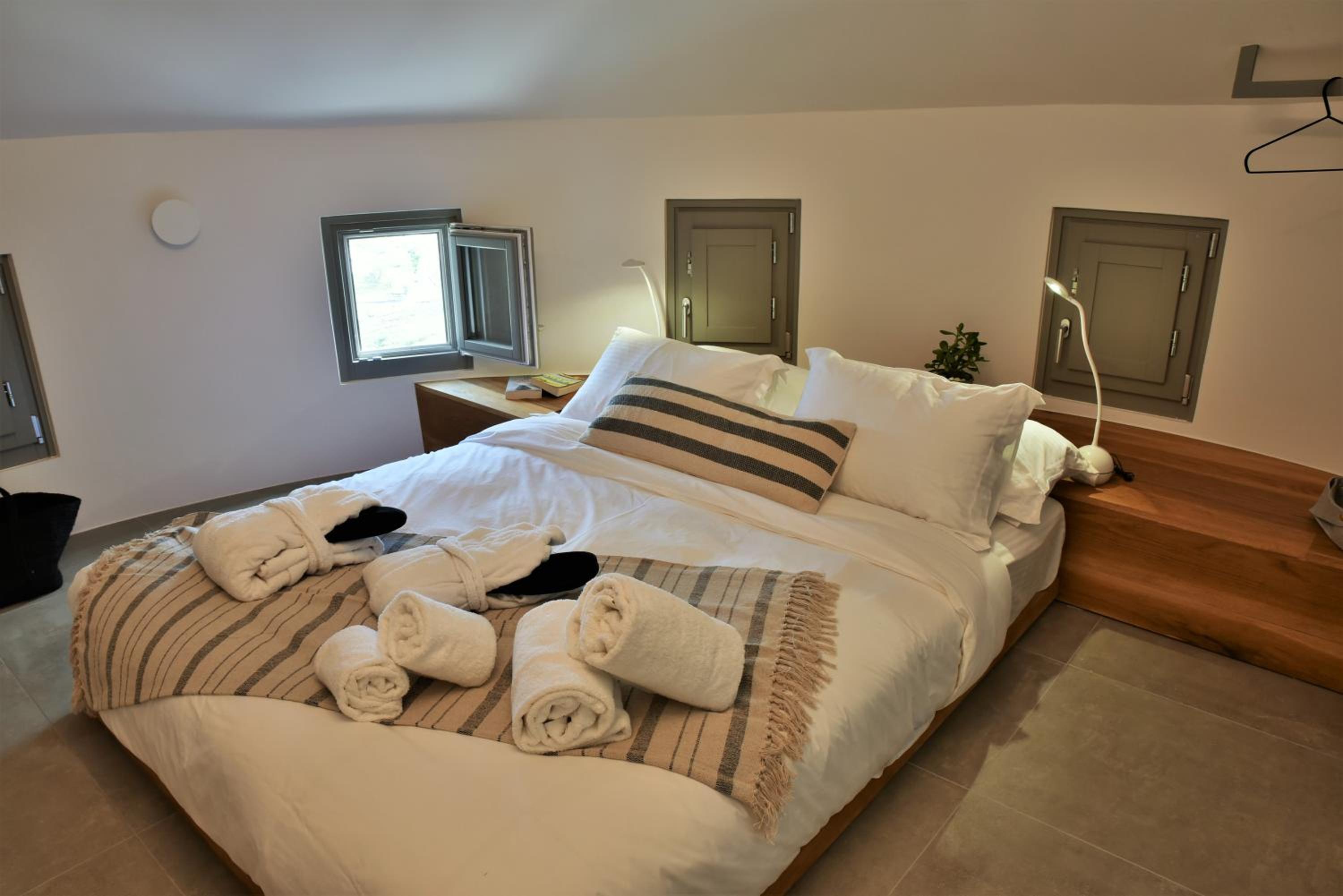If you are driving, the climb up to some rooms can be daunting. Took me by surprise how steep it was. My fiat panda barely made it every time. A mirror on every corner could be really helpful as well. But it is what it is. Windmills on a mountain side