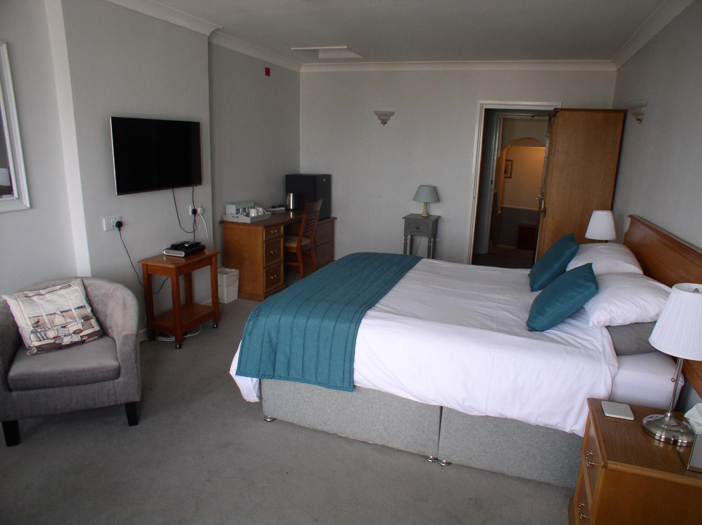 Room was very spacious and had everything you may need (coffee facilities, hairdryer, TV, ironing board and iron). Nothing was too much trouble for Andrew and the staff at St Magloire. The communal terrace overlooking St. Aubins bay is a lovely spot. Breakfast was very nice with many different options available. We will definitely be back to stay at St. Magloire.