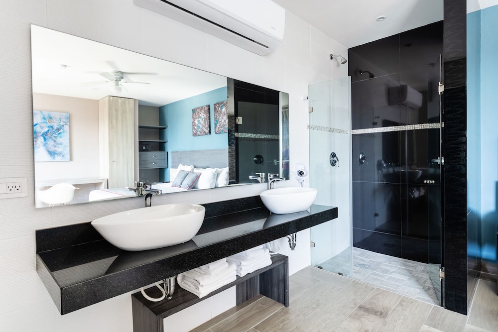 Dive into relaxation with our stunning outdoor pool, or enjoy the breathtaking views from our terrace. Each air-conditioned room features modern amenities like minibars and rainfall showerheads for a truly luxurious experience.