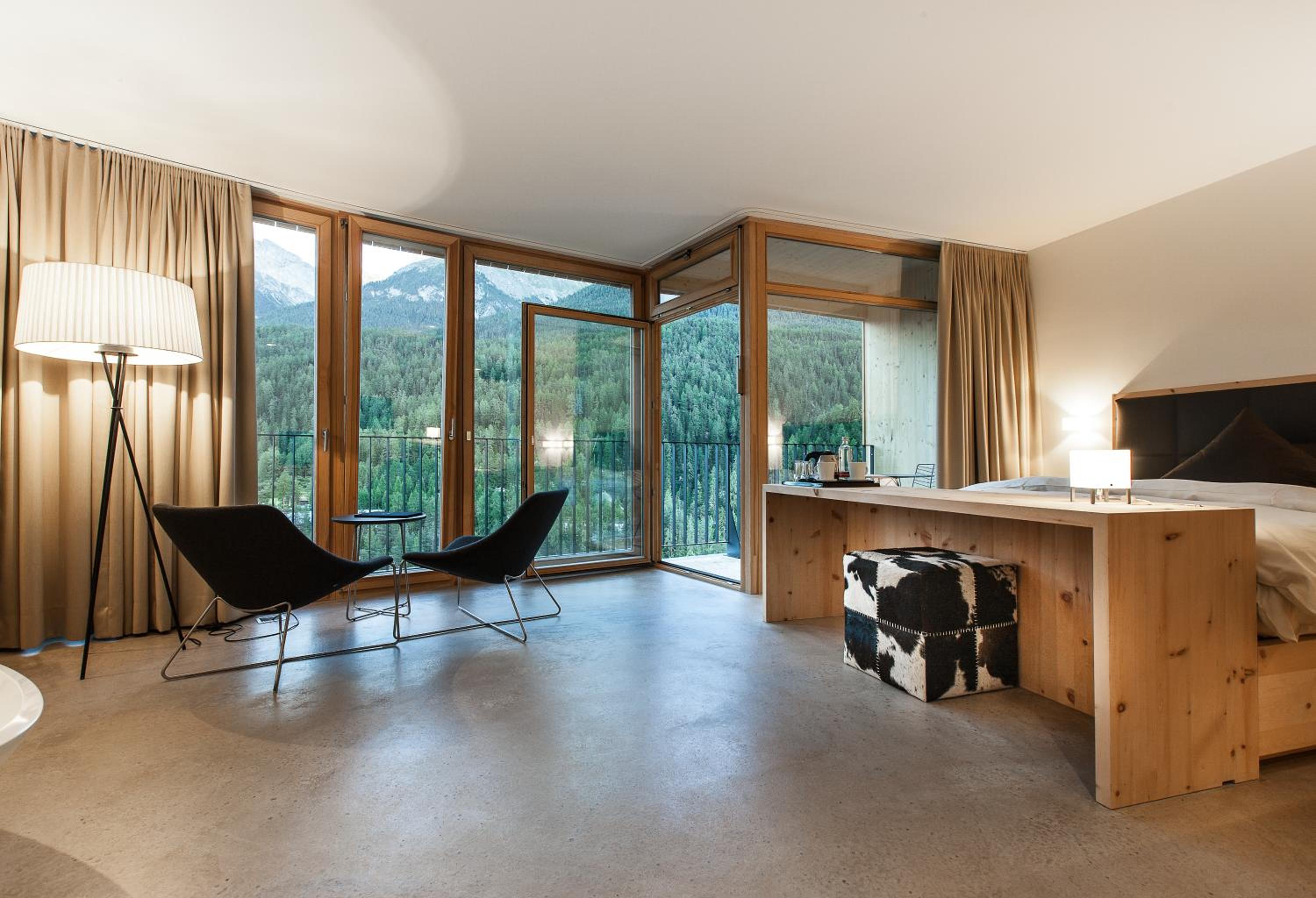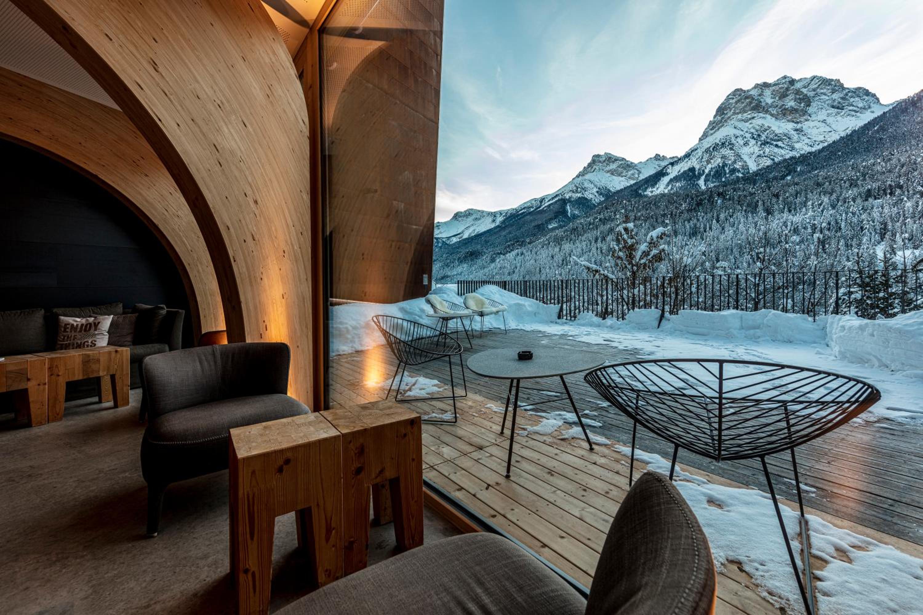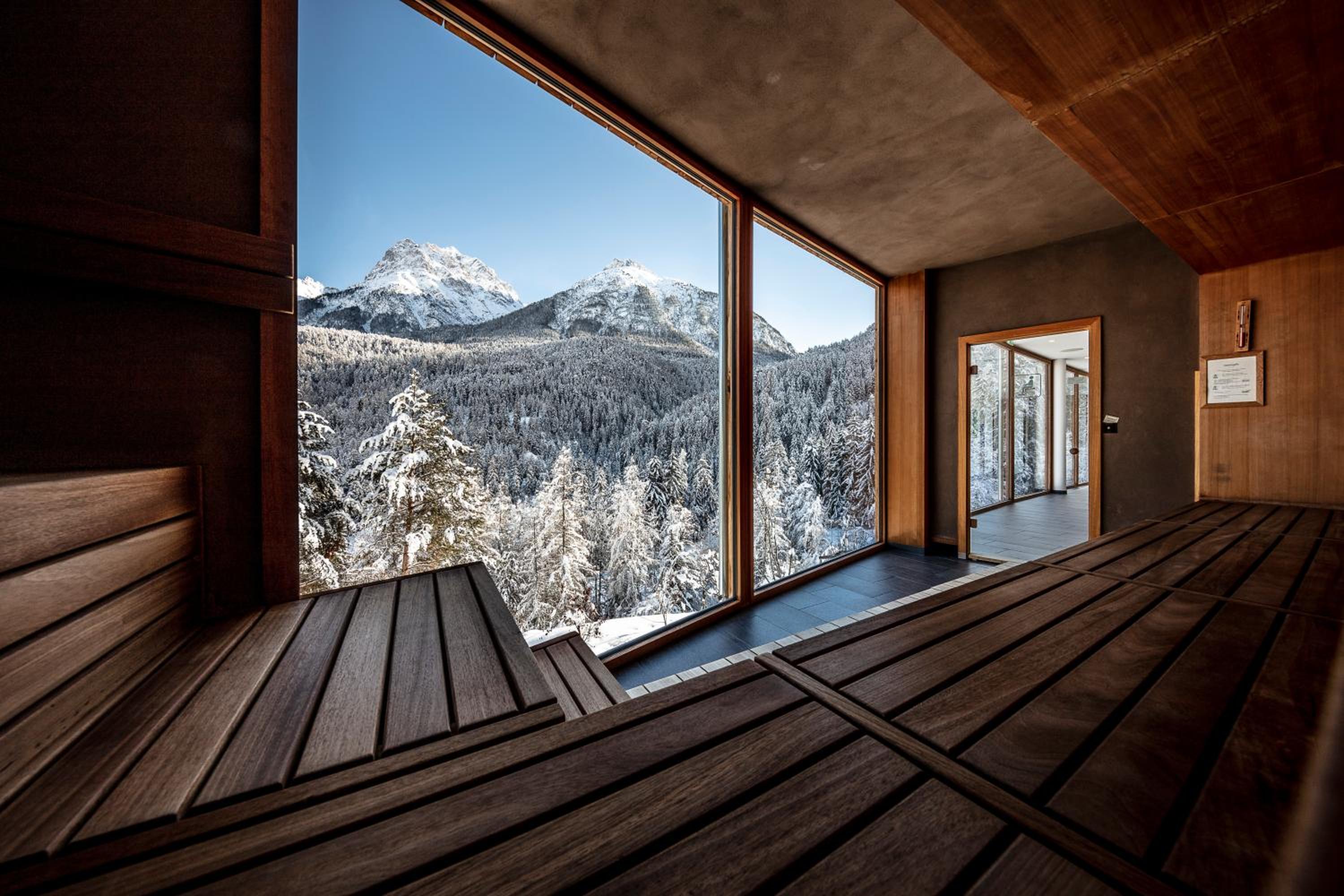 The Hotel Arnica Scuol offers stunning panoramic views of the Inn Valley and Engadine mountains through floor-to-ceiling windows. The classy contemporary décor adds a touch of elegance to your stay.