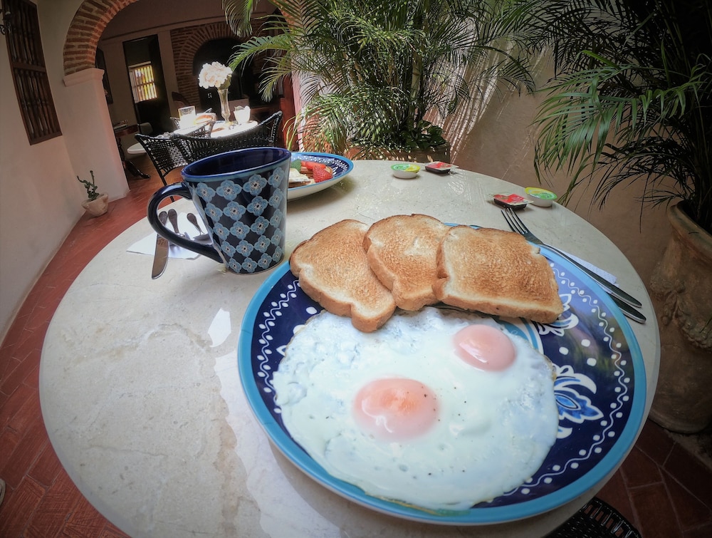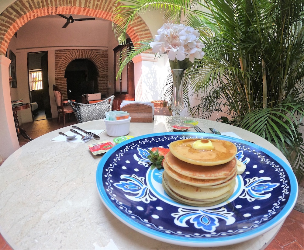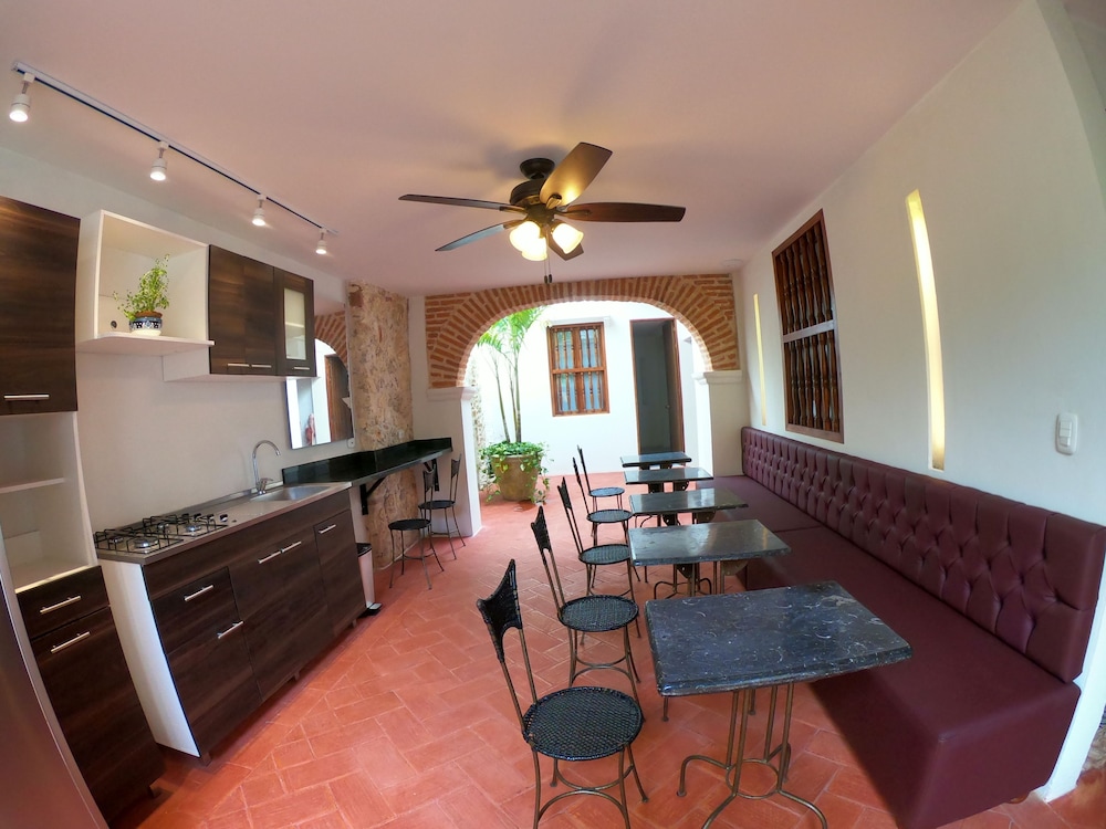 The property’s location is the best. It is located in Getsemani and is around many restaurants and bars. It is very lively and you will always find something to do. It is only a 5 minute walk to the walled city. The property itself is very colonial but at the same time very simple and clean. There is no humidity even though it is an older house. The tv channel options are great for those who like to stay in. The girls at the front desk are great and informative. Ask them any suggestions and they will help you. 3 girls rotate for a 24 hour front desk coverage which I found amazing. There is no refrigerator in the rooms and I missed that some days to have a cool drink. Also it would be nice if they had more breakfast options. They offer fresh fruit everyday which taste really fresh. We all felt really safe and comfortable in the premises and surroundings.