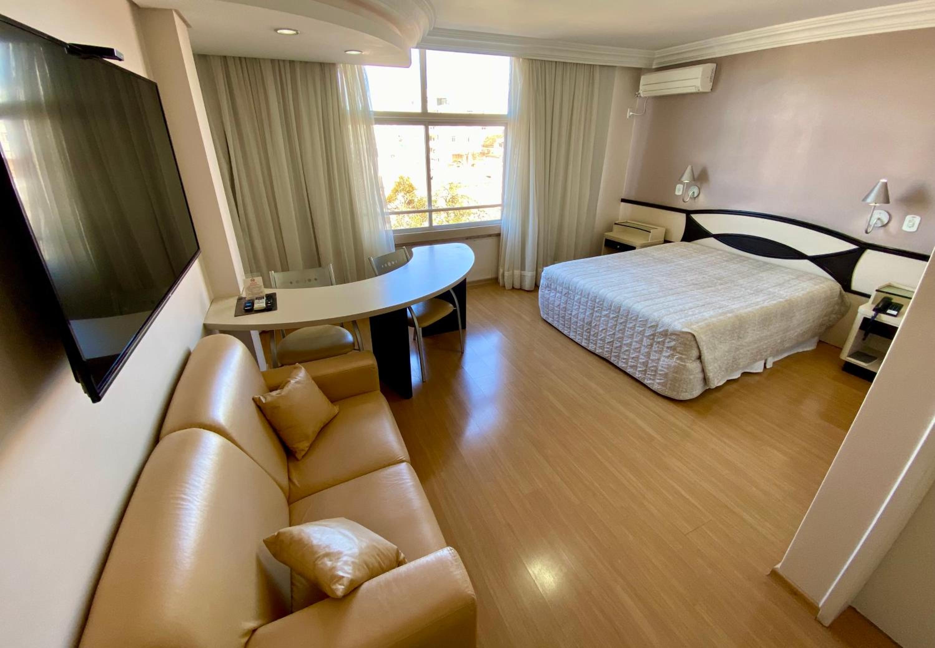 O hotel é bem localizado, no centro da cidade, com vários bares e restaurantes por perto, estacionamento amplo e gratuito, o quarto também é amplo, confortável, cama queen, ducha boa. O café da manha é excelente, tem opções para todo gosto, a atmosfera do local onde é servido o café da manhã também é muito agradável.