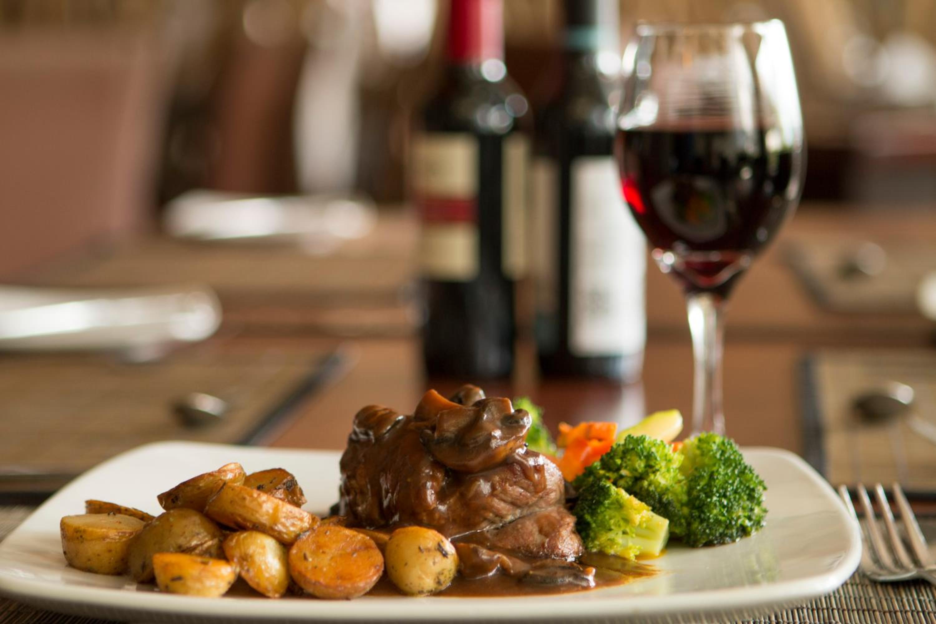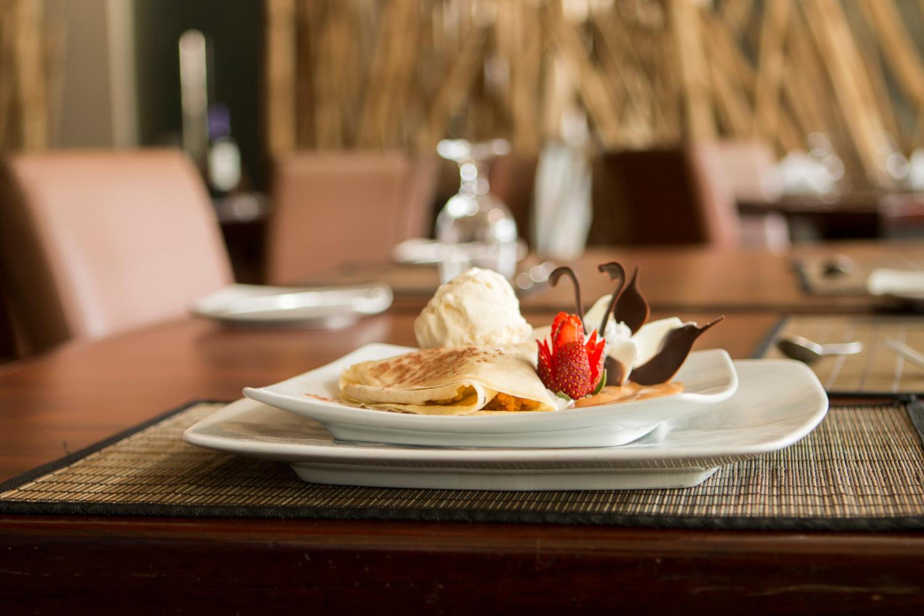 The breakfast was great but food service for an evening meal would be helpful for travelers.