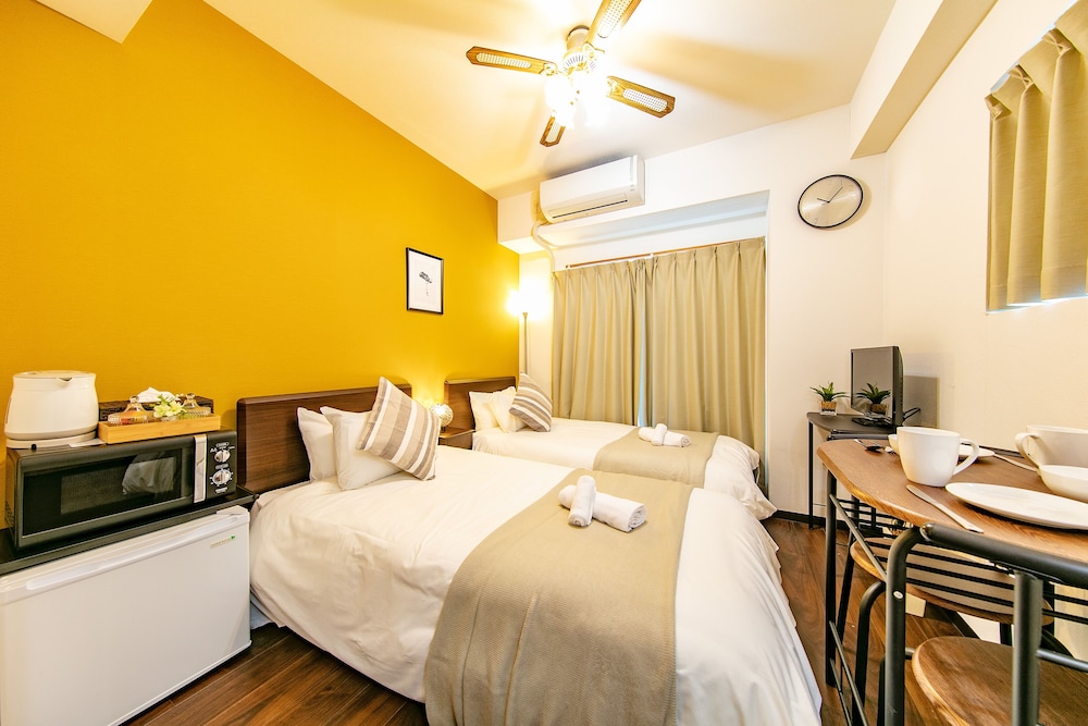 The location is safe and convenient - nearby a convenient store and restaurants, 15-min. walk to JR station and <10-min walk to metro line. The room is a bit small for twin-bed, but reasonably equipped with utensils for kitchen. The toilet and shower room are well partitioned.