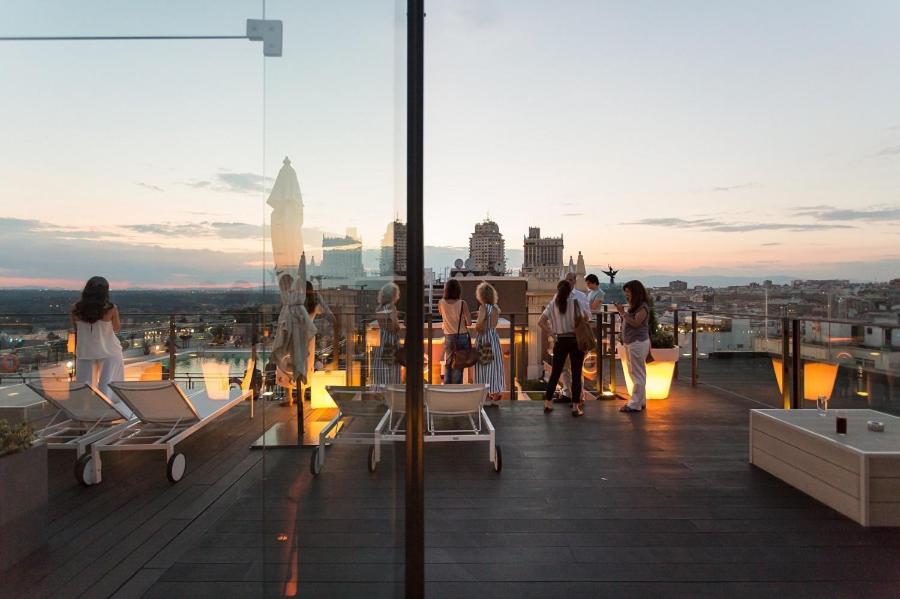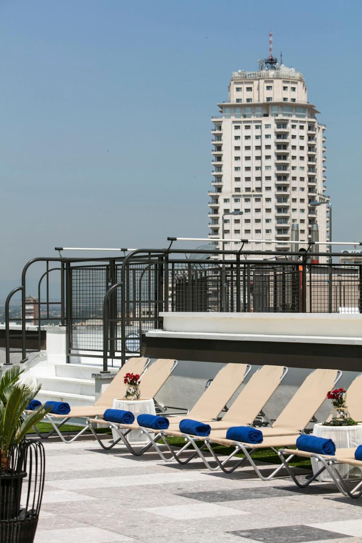 Unwind at our seasonal rooftop swimming pool and terrace, offering breathtaking city views. Sip on cocktails while taking in the sights of the Royal Palace, Almudena Cathedral, and Gran Vía Avenue.