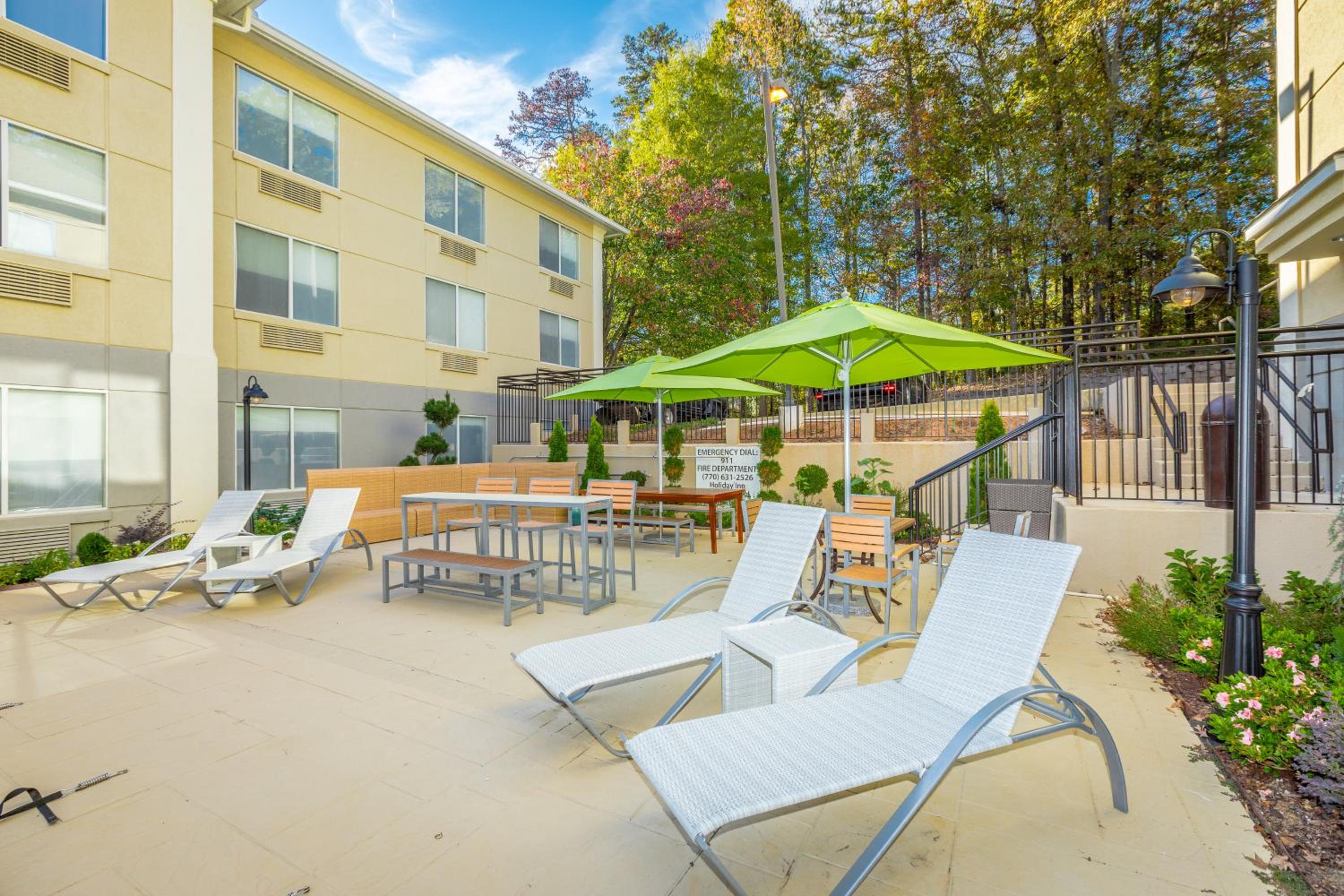 Enjoy a refreshing dip in the outdoor pool or indulge in delicious meals at the on-site restaurant during your stay at Holiday Inn Hotel and Suites Peachtree City.