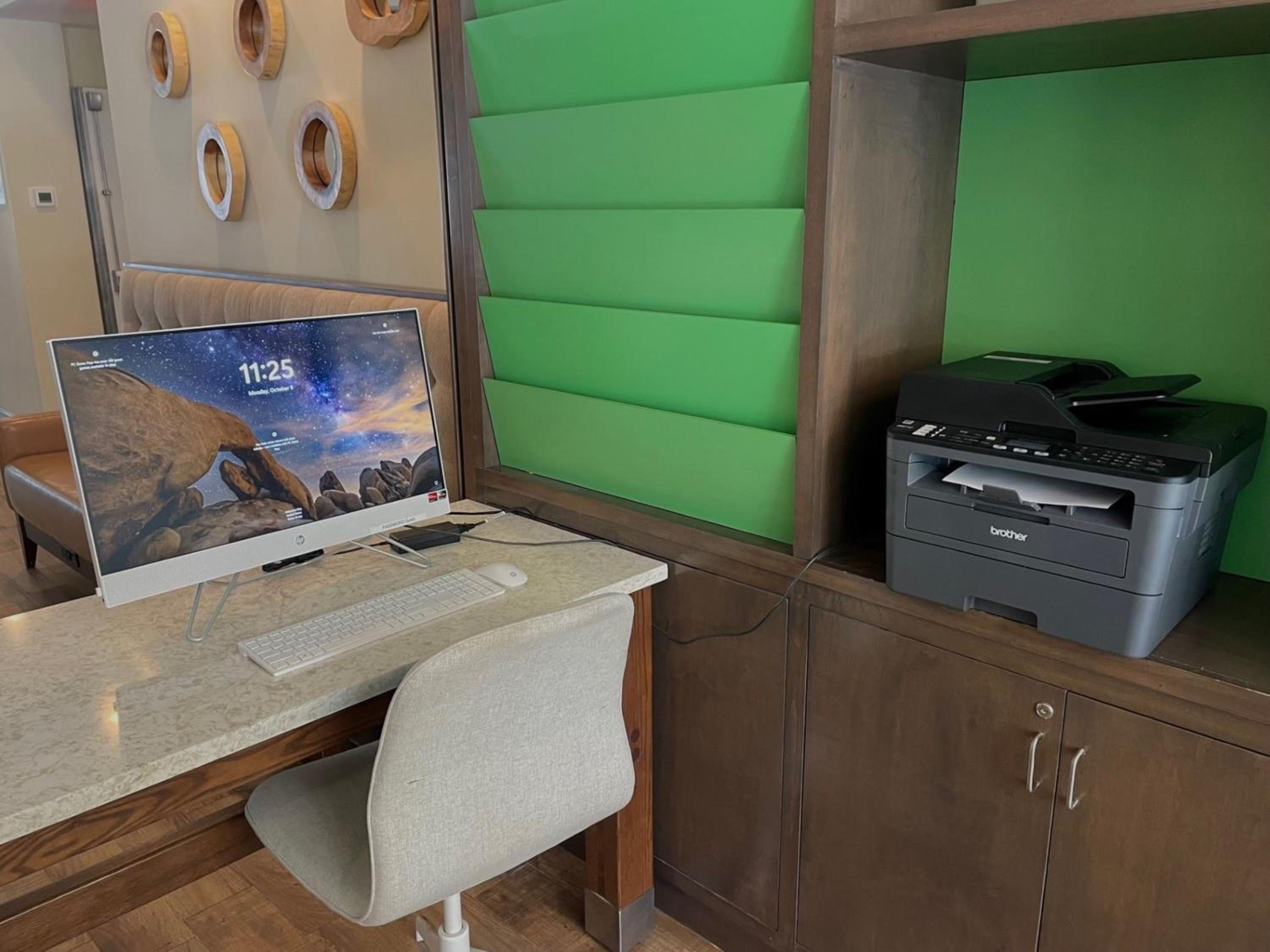 The young beautiful lady at the front desk was so kind, friendly and accommodating. The room was nice and breakfast was tasty. Close to shopping and restaurants. She baked the cookies and came outside to give them to us when they were ready.
