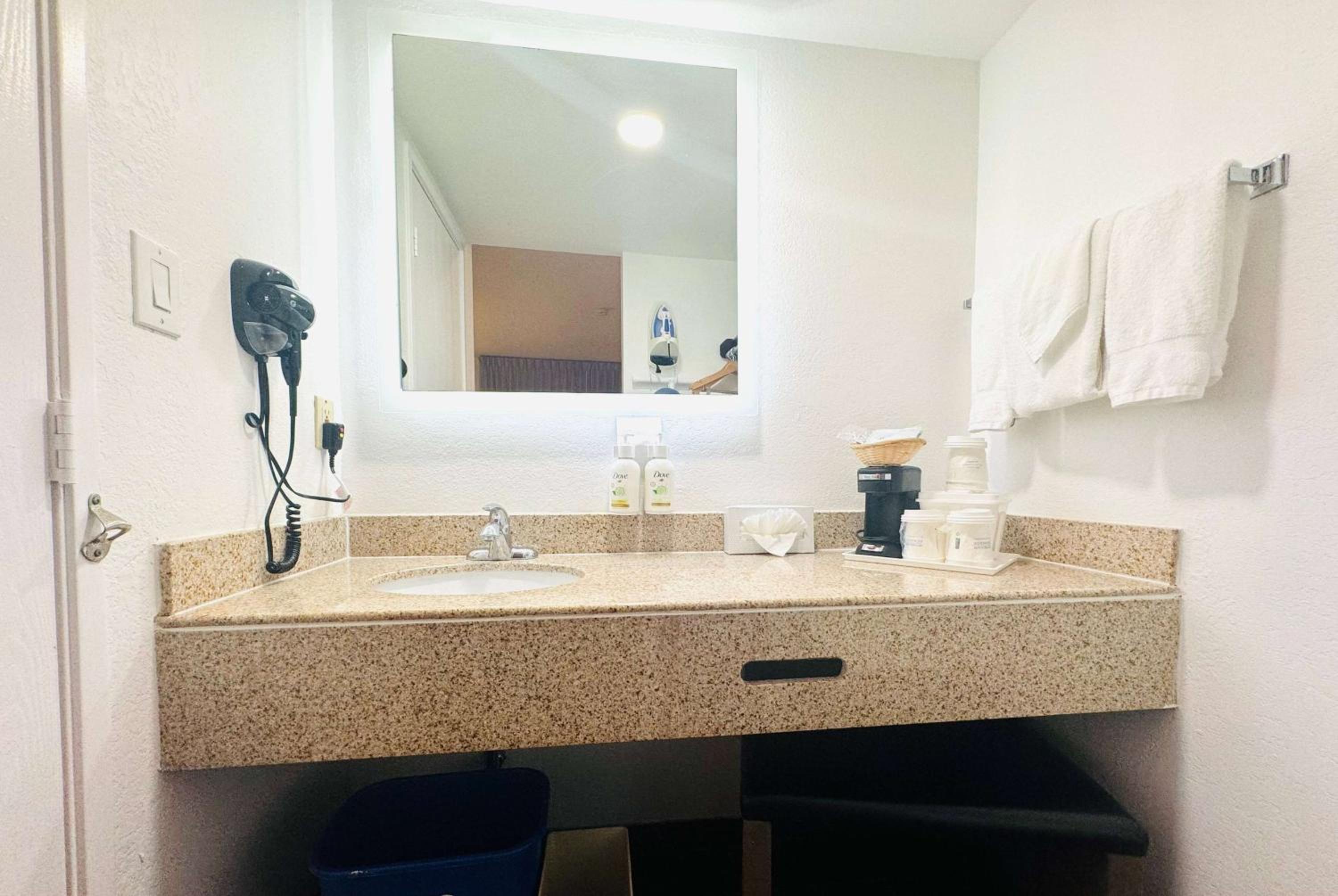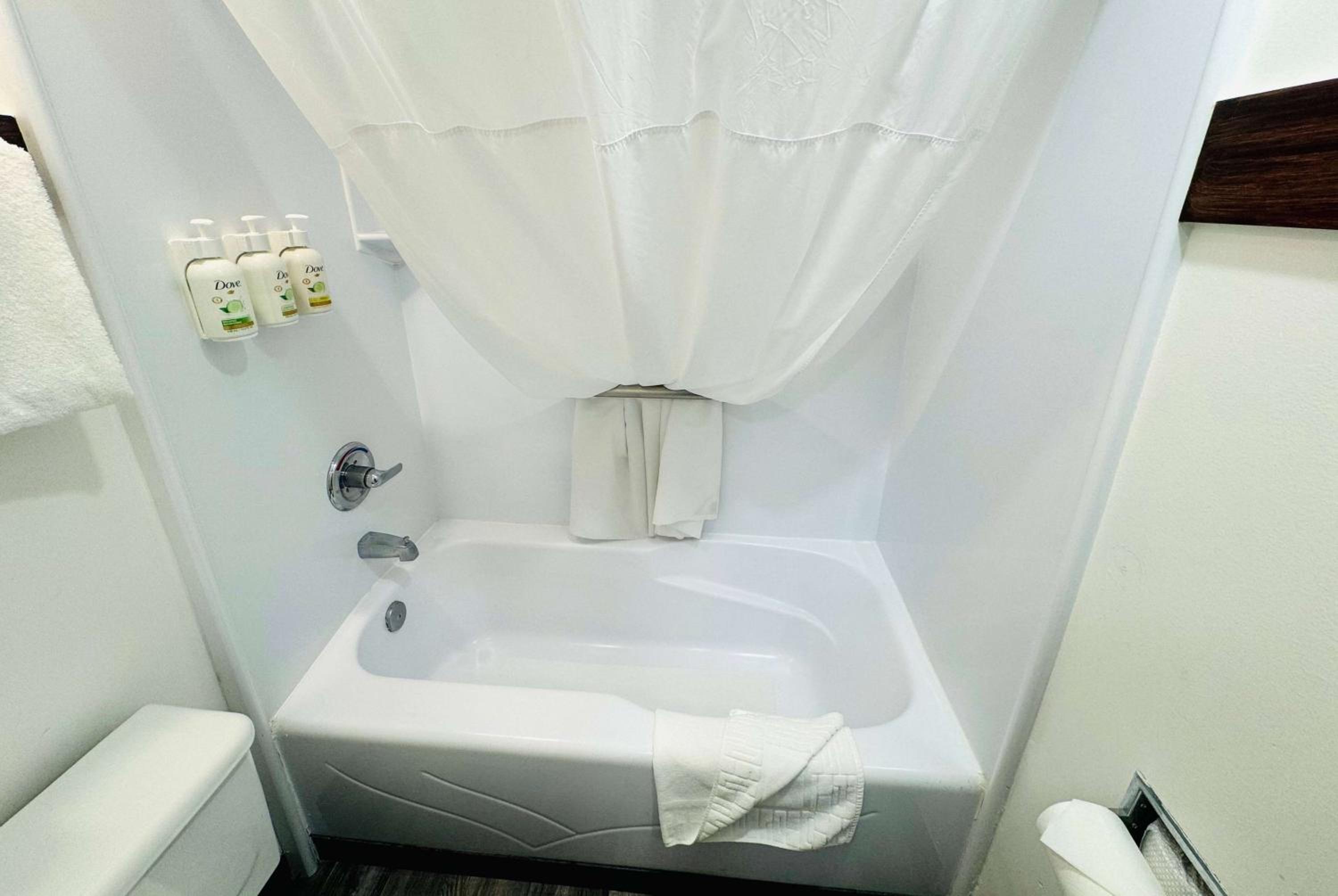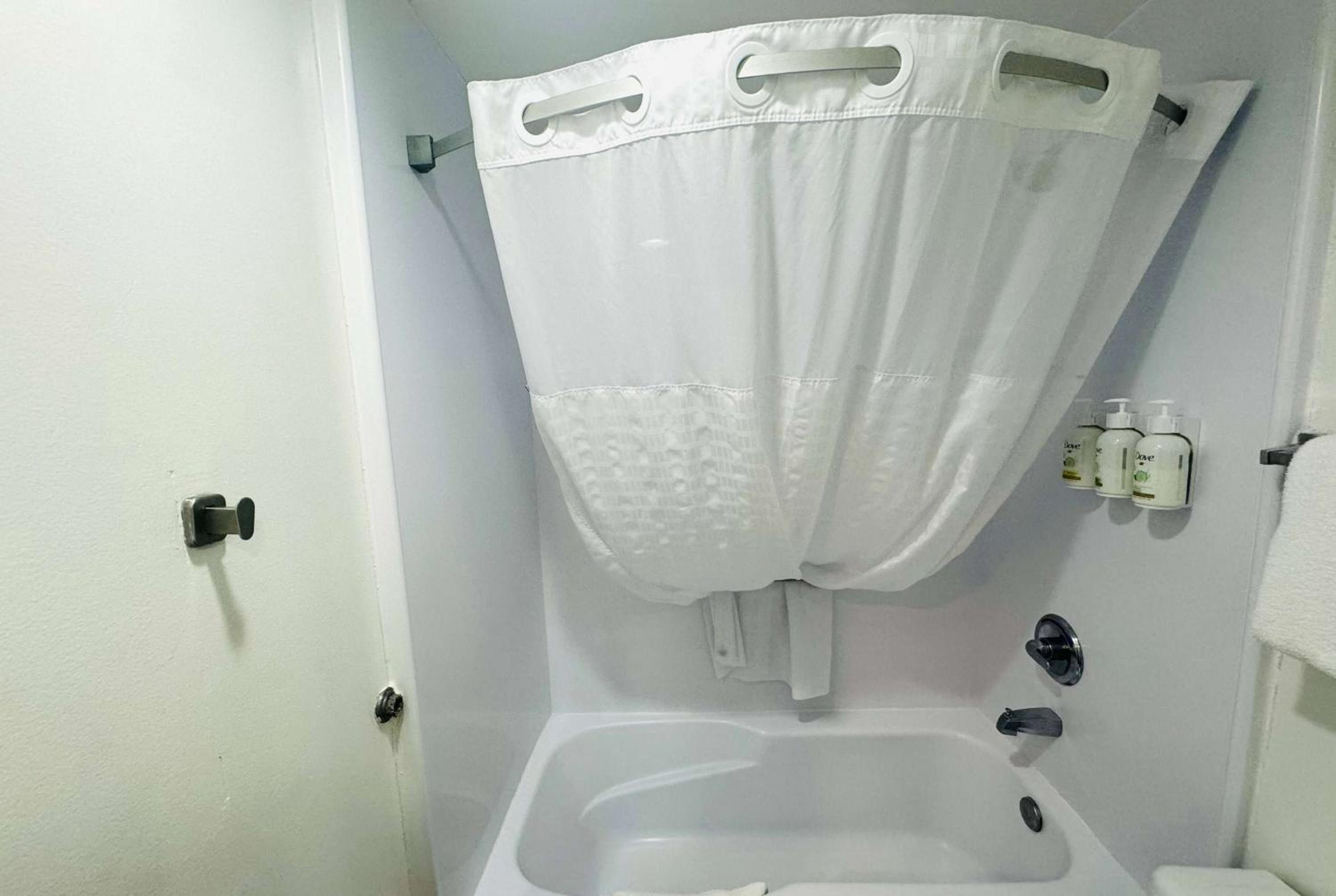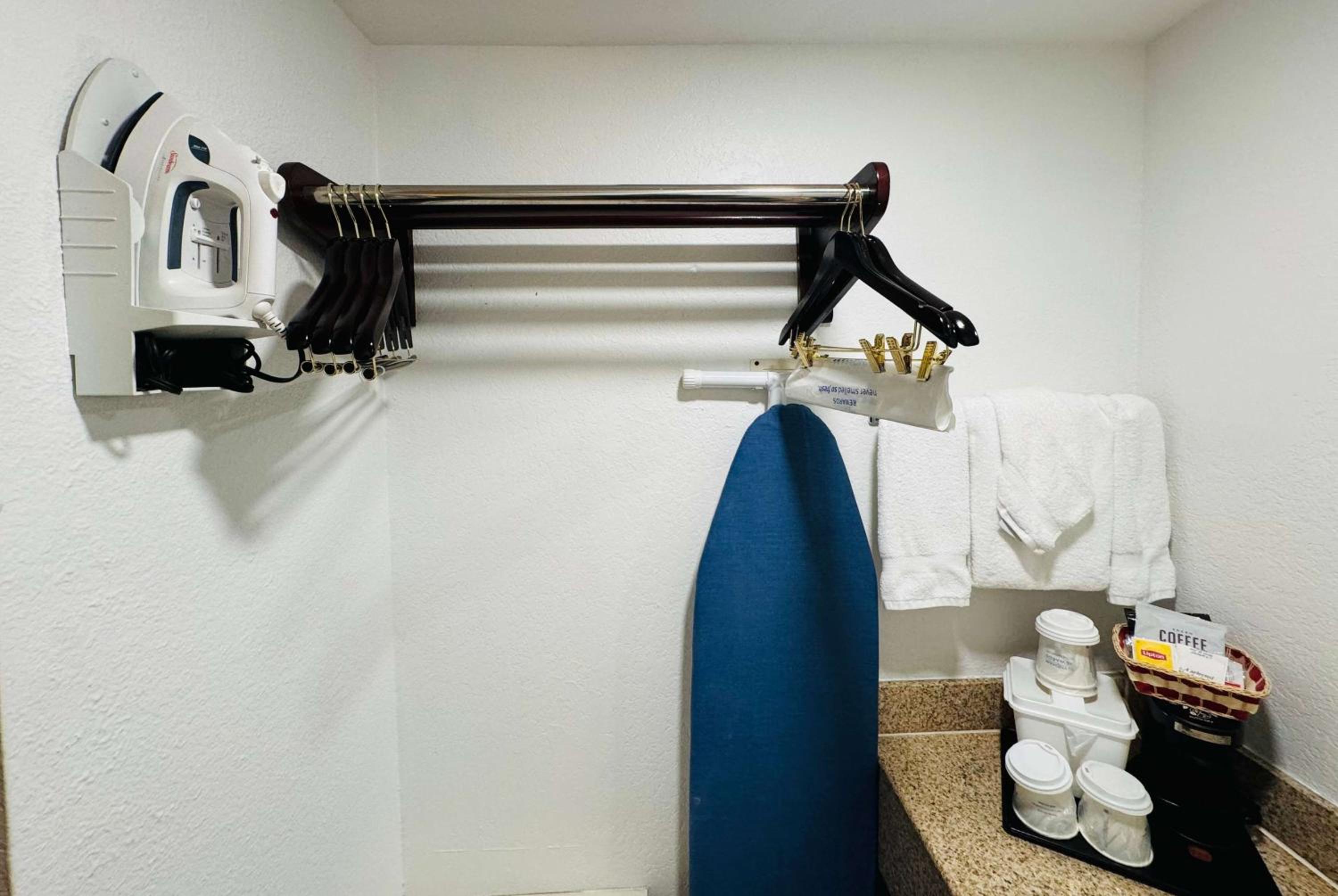 Upon arrival, even finding parking gave me a feeling I didn’t want to stay. The hotel was in the middle of replacing carpet, and a large roll of new carpet was spread across the parking lot. While I understand renovations happen—and thought, at least the carpet will be new—we had to squeeze around it in a tight area just to get inside.