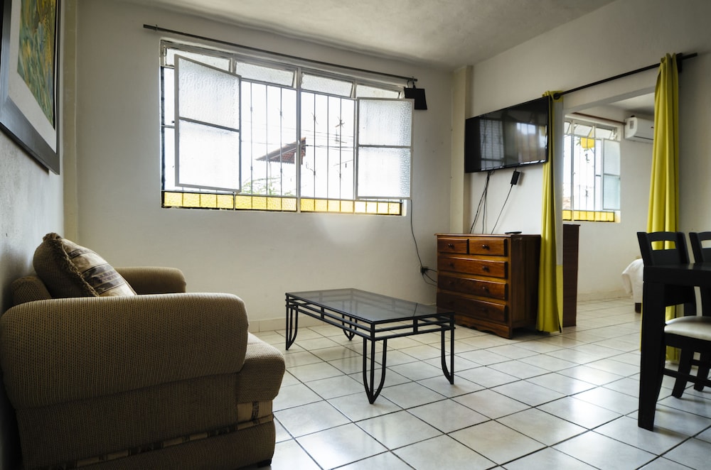 EL DEPARTAMENTO ES BUENO, Y AMPLIO PARA LAS 6 PERSONAS QUE ESTUVIMOS AHÍ, PERO LA TV. NO FUNCIONÓ, Y PARA MÍ EN LO PERSONAL LA UBICACIÓN MUY EN ALTO. PERO ESO ES PORQUE A MI ME CUESTA TRABAJO SUBIR Y BAJAR. POR MI ENFERMEDAD, PERO ESTUVIMOS MUY BIÉN AHÍ. GRACIAS