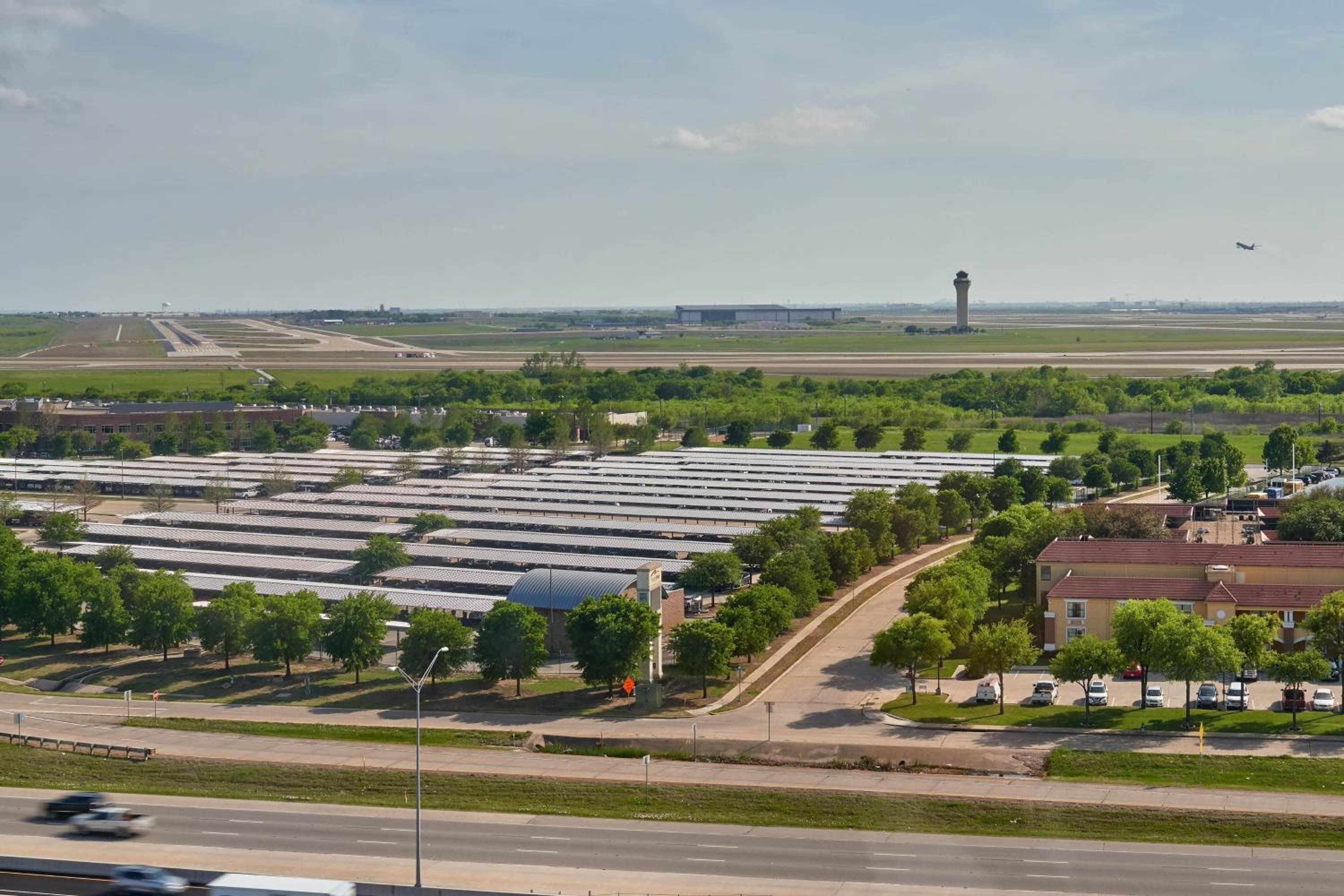 This hotel adjacent to Dallas Fort Worth Airport offers a rooftop pool, free airport shuttle, and in-room spa services for a truly luxurious stay.