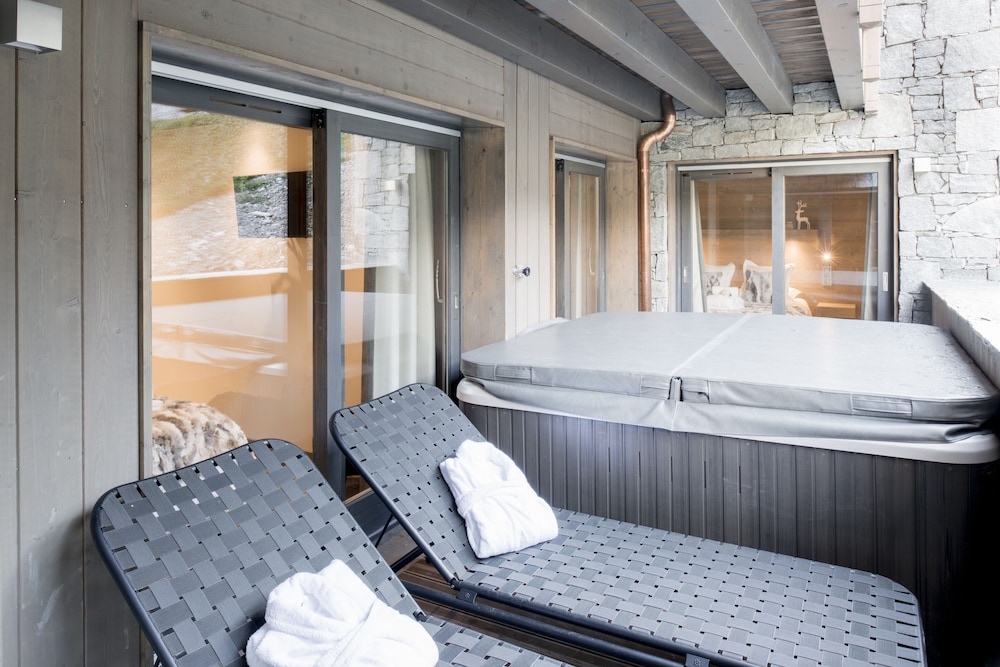 Indulge in the stunning views from the terrace of this aparthotel in Courchevel.