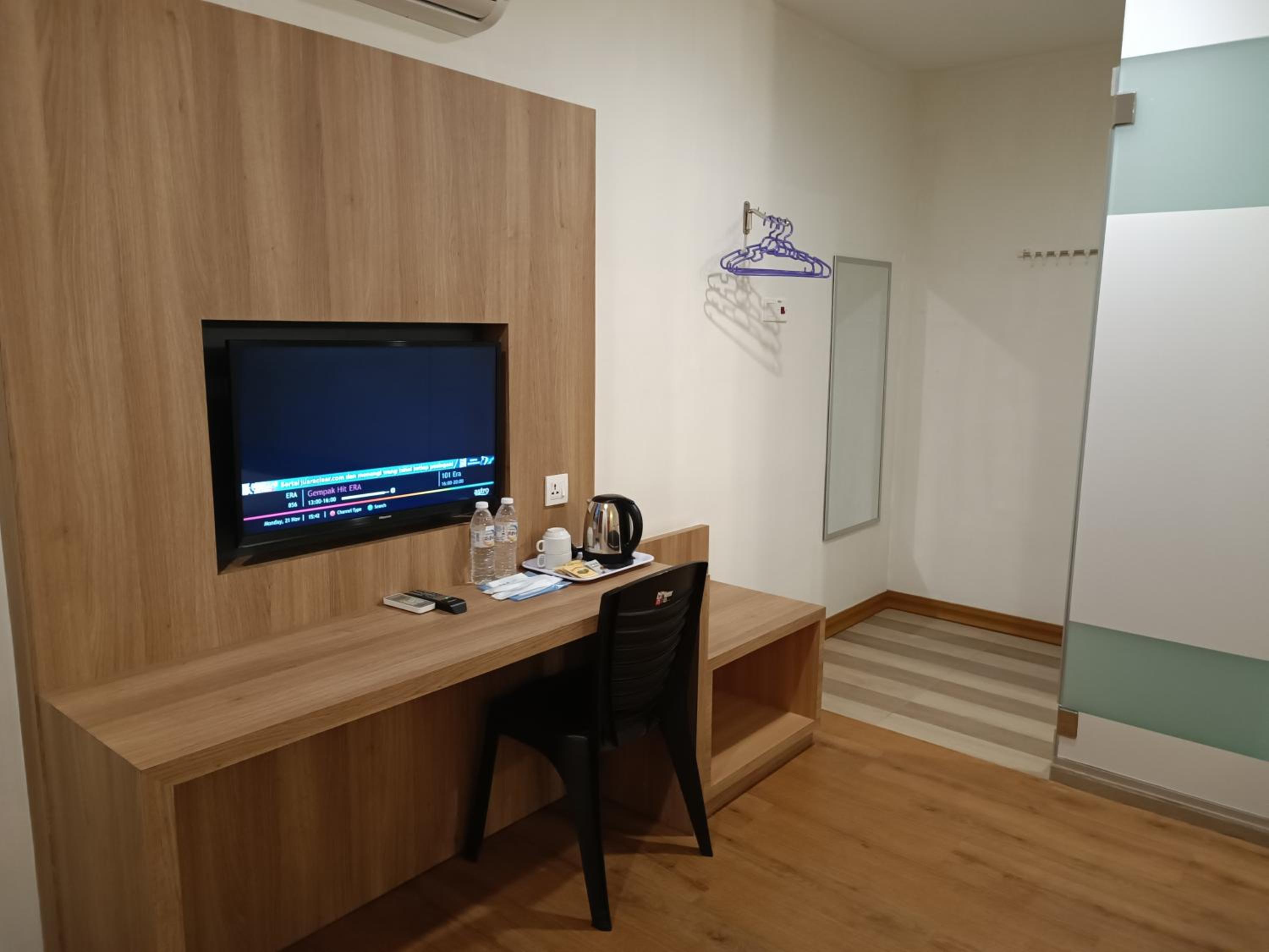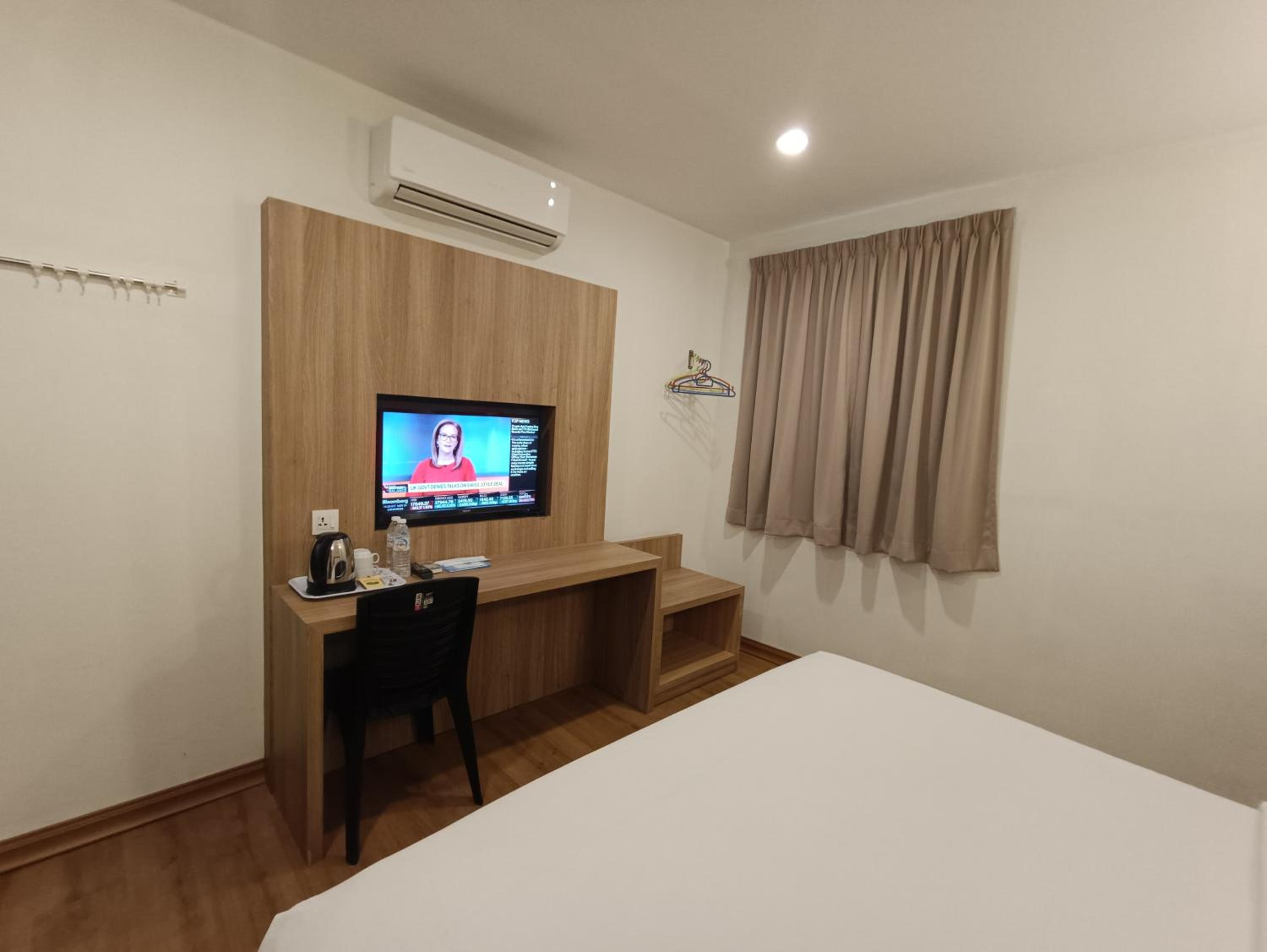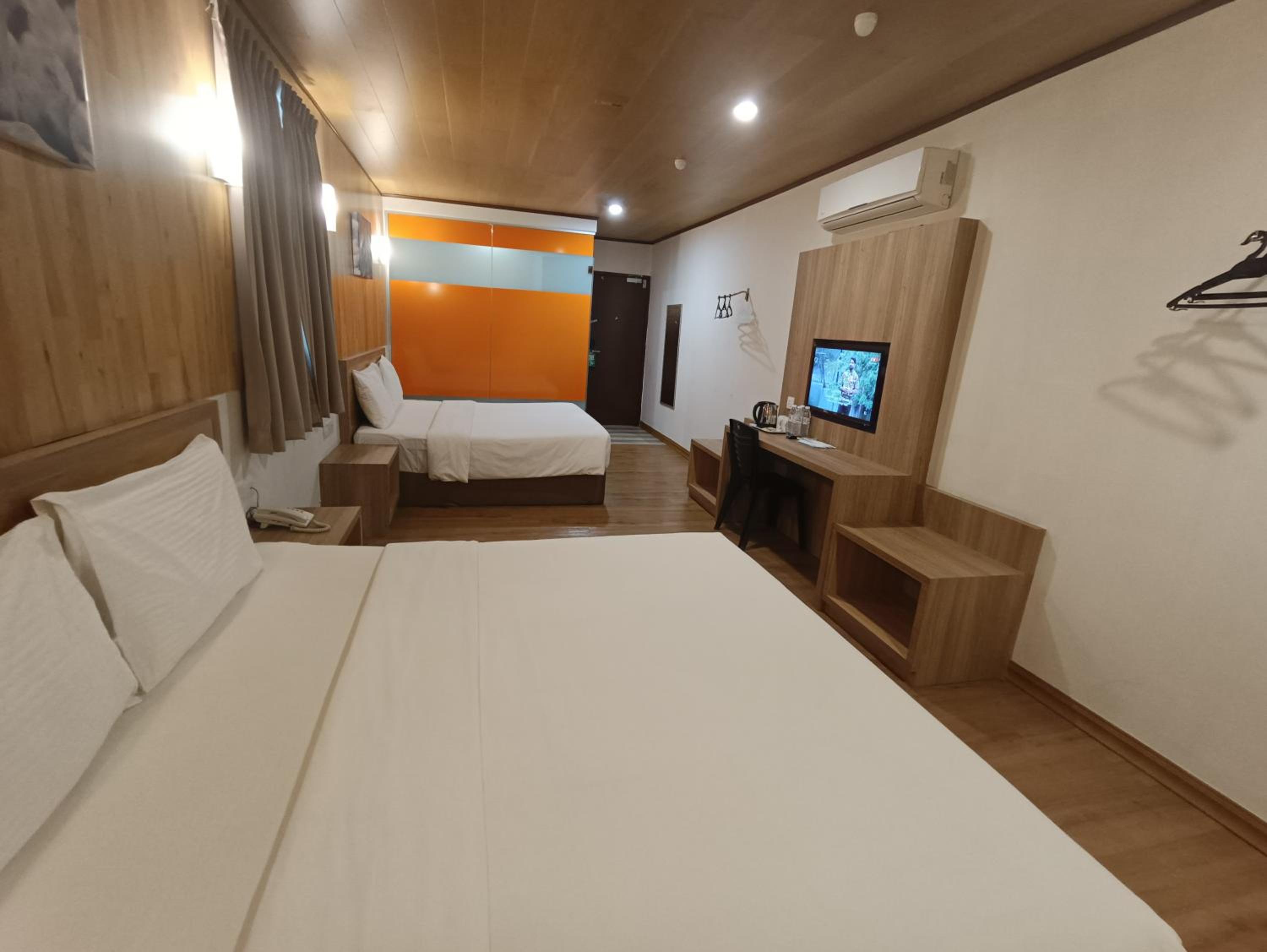 Indulge in modern comfort with our well-equipped guest rooms featuring flat-screen TVs.