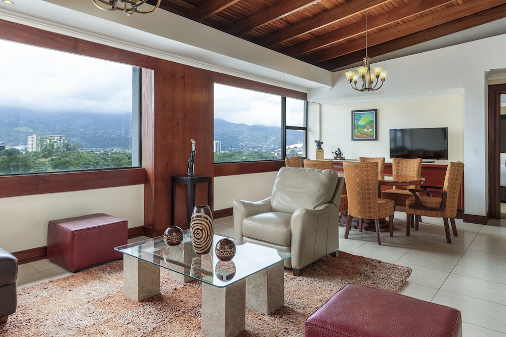 Excellent location next to La Sabana Metropolitan park for walking and enjoying the nature. The supermarket is across the street. Amazing reception and wonderful club lounge. Got upgraded room for being IHG diamond. The room is big with all the amenities and large TV with English channels and CNN.we enjoyed the breakfast and the happy hour at the Executive lounge with fresh squeezed juice and healthy organic food.