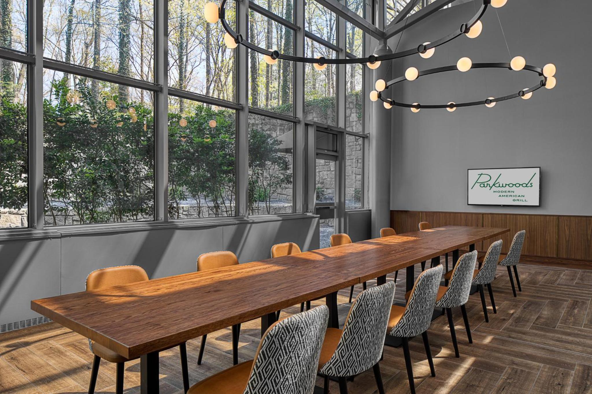 Parkwoods at the Atlanta Perimeter at Ravinia Crowne Plaza offers a delightful culinary experience with breakfast, lunch, and dinner options. Guests can savor their meals while enjoying stunning views of the Ravinia Gardens, creating a memorable dining ambiance.