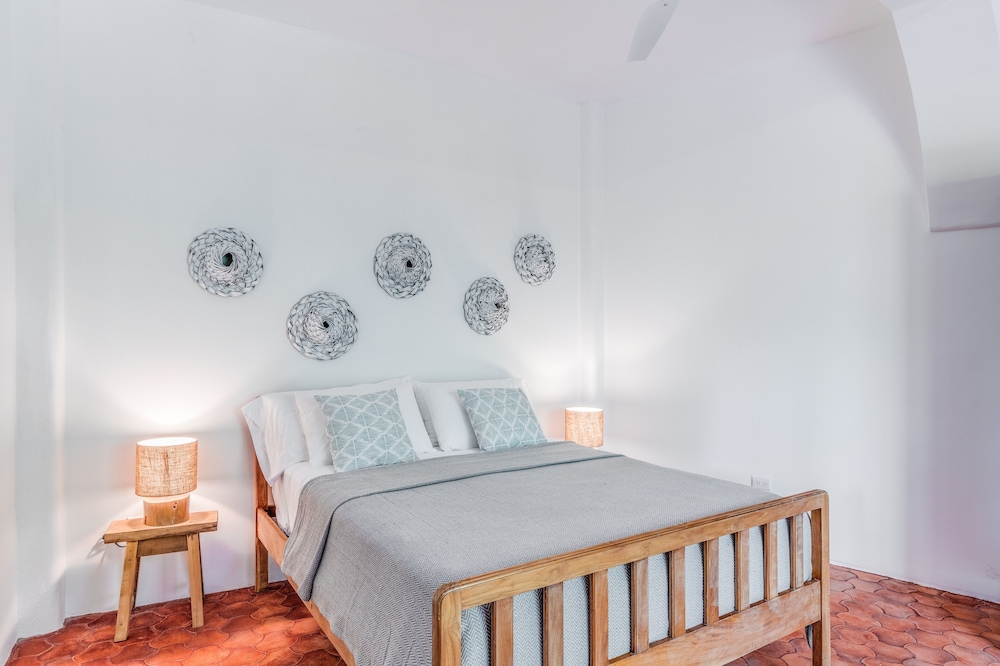 Close walk to Guiones beach but you have to drive all the way around (16min) to get to Guiones beach and village. The road to La Luna Restaurant should be lighted because the onsite restaurant closes at 4:00. The hotel needs some paint and facade repair. Very cool architecture.
