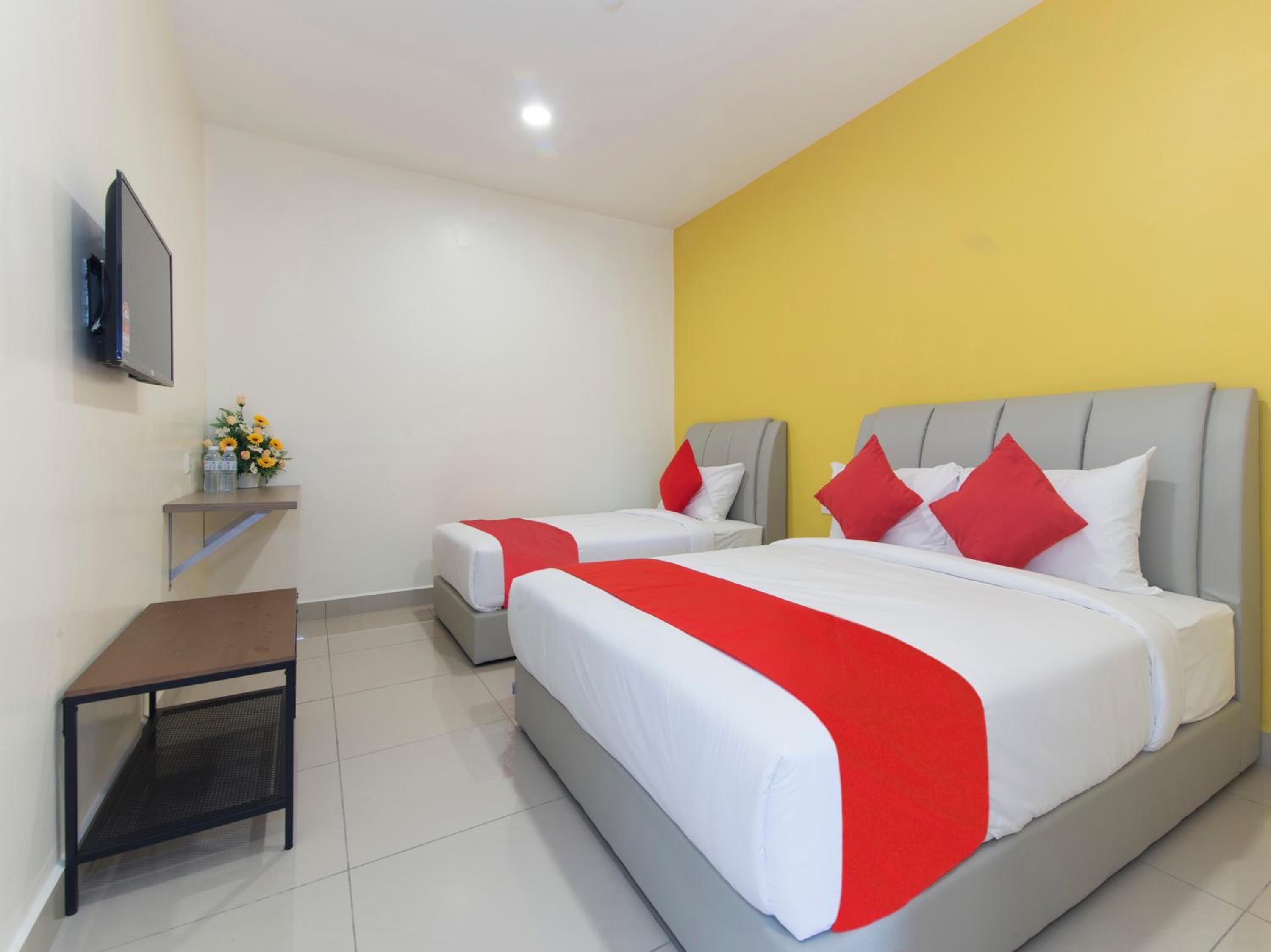 Comfortable Rooms: Experience comfort and convenience in our air-conditioned rooms equipped with free WiFi, a desk, and a flat-screen TV.