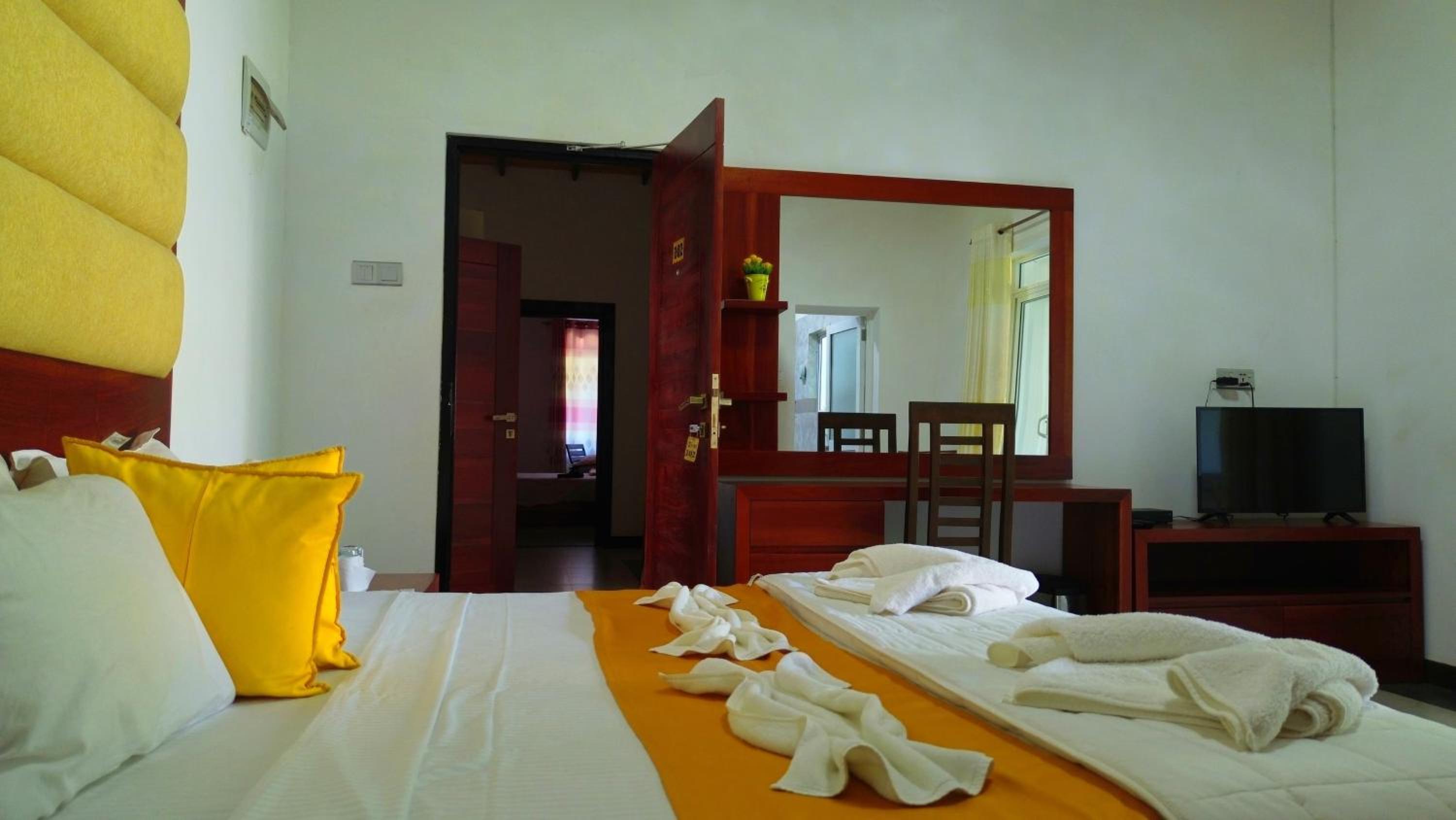 The room was nice, spacious, and clean. We did notice a bit of a smell from the bathroom due to some dampness, so we kept the door closed. But honestly, this is a common issue is in many places here, and it didn’t affect our stay much. Overall, your place has been by far the nicest accommodation we’ve stayed at so far.