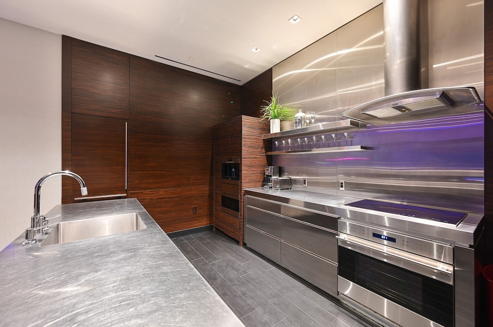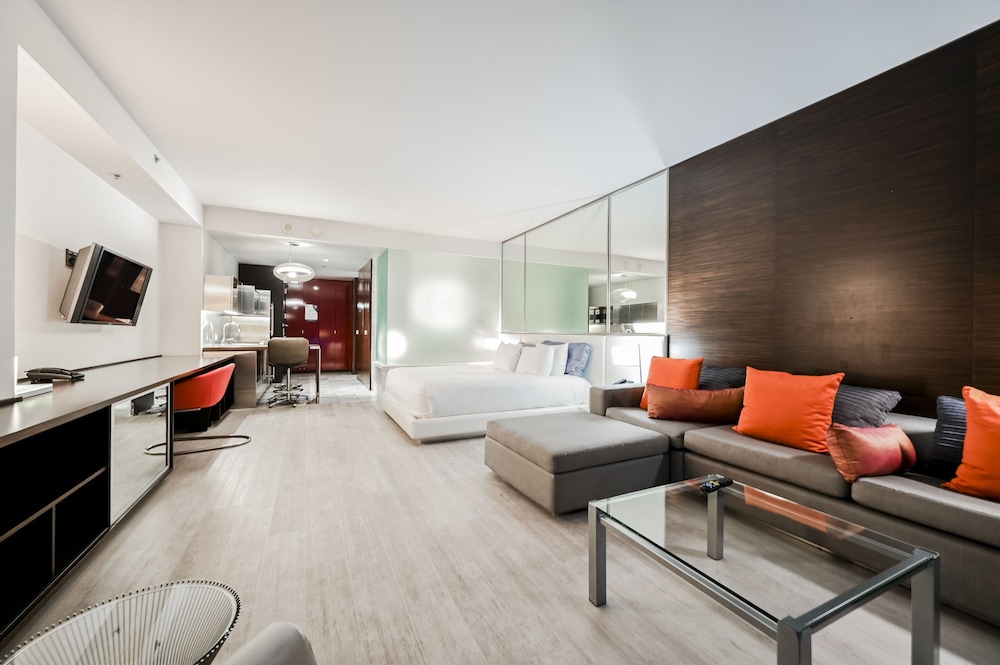 Relax in individually decorated guestrooms with kitchen facilities. Unwind in a pillowtop bed with Egyptian cotton sheets, and enjoy entertainment on a 65-inch Smart TV.