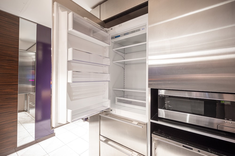 The refrigerator was not working. Had to pay to rent blankets and sheets for the beds. The balcony door was locked. No maid service to retrieve trash or pick up wet towels. Bathroom door locks you in. Very Horrible experience.