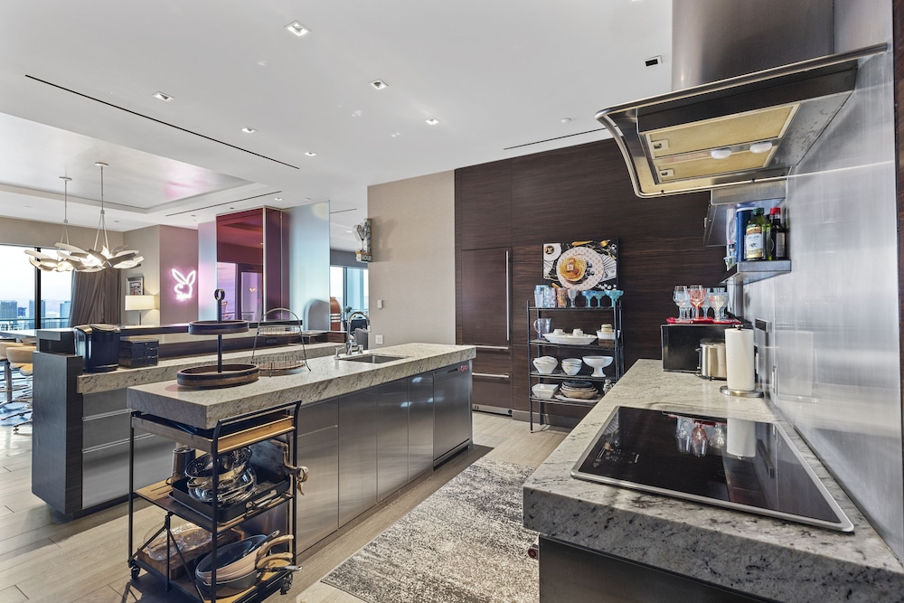 I liked the large space, great view, nice amenities and multiple large beds and bathrooms. What i didn't like is the condition of the room. The large fridge did not work, one of the window curtains was torn with the sun shining in your face where the rip was when you woke up, 2/4 televisions didn't work and cleanliness was not very good when we got there. Didn't look like they mopped and there were many hairs from previous guest all over the the place. Housekeeping is an extra charge. We called the Palms to come at least try to fix the televisions as there were five of us in the rental. Maintenance man basically tried to jiggle a few wires and call the cable company but no luck. He couldn't do much because the place was privately owned and the owner would have to hire out to fix the issues. A little frustrating. Overall, The pluses outweigh the cons, but if you choose to stay at stripviewsuites at the Palms ensure the property is owned by the Palms and not an independent owner as if there are issues there is a better chance they get fixed.