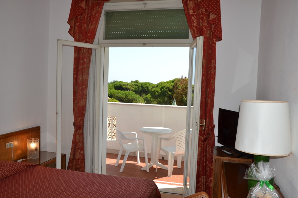 We stayed 10 nights at this nice and relaxing hotel. It's a retro hotel, liberty style, so don't expect it to be something modern! The furniture is dated, but it's exactly what makes this hotel special! Wonderful breakfast served everyday at the park. Food was ok, we always had fresh fish. Sometimes we couldn't understand what the hell did they put in the vol au vent at the buffet but we realized the guests are mostly international so probably they liked that type of cuisine . As italians we preferred other food served, and we appreciated a lot the choice between 5-6 main courses and 5 second courses of fish or meat. The service was good, all the guys were available, nice and professional, we want to say a big thank you to our waiter Vittorio, who was always quick, precise and kind. Walking to the beach everyday was a real pleasure crossing the pine forest just in front of the hotel. A nice 3 minutes walk and we were at the beach. We booked here because we received an interesting discount from getur and in 4 years we know this hotel group we had great holidays at cheaper prices. The hotel is located close to the center so in the evening we could enjoy a walk through the pedestrain area (that starts at the corner of the building) where bars, restaurants, disco, mini golf, live music and stalls attract families and expecially youth. The sea was better than expected.. And we definitely suggest this hotel for your next holiday
