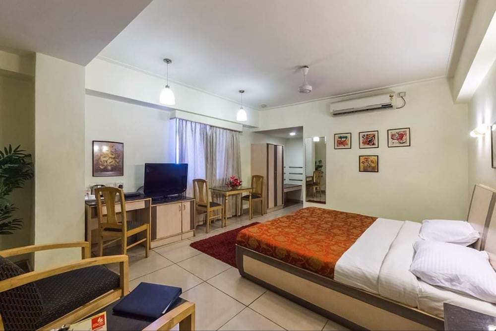 The location of the hotel is fine as it is near MG road market which made it easy for us to buy food and water. You can also do some shopping because stores are really close by especially Cauvery - the government owned cottage emporium. The rooms are alright but the furniture can be upgraded a bit as you might find a few scratches and dents on appliances and furniture. Besides that the room does not have ventilation or an exhaust but the AC and fan make it comfortable. The major downside is the complimentary breakfast menu which is great for a day or two of stay but if you are planning to stay for a week or more than a week then it can be a bit difficult to keep eating the same food daily.