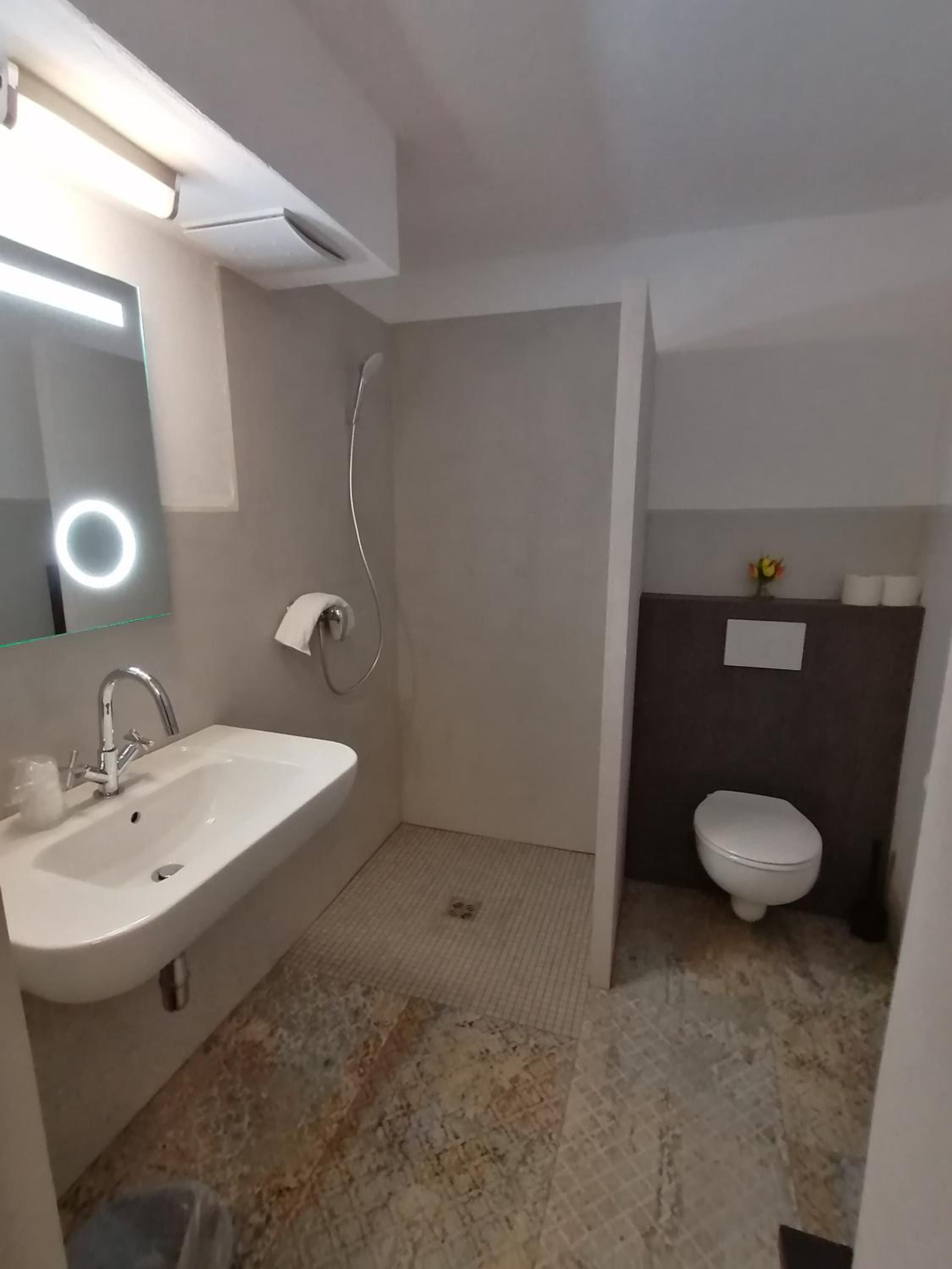 Duschbrause musste man in die Hand nehmen weil es kein Gestänge gab. Badlüfter sehr verdreckt.