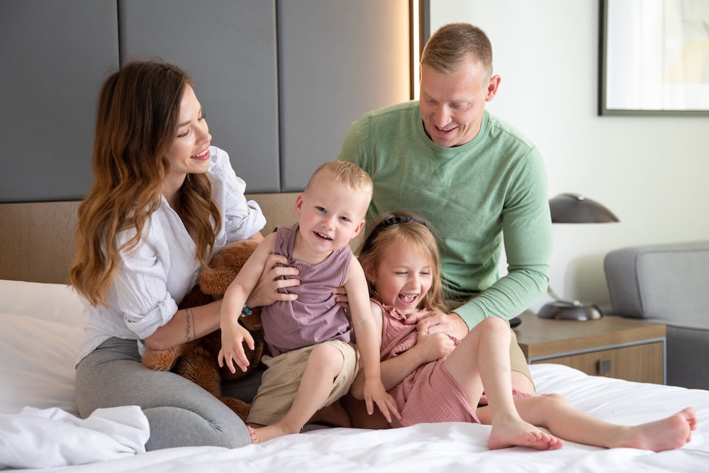 Check in was slow, they mixed up our booking with anouther guest, had to ask for a cot to be removed from the room, second key card didn’t work so got stuck in the lobby. If you get rooms ending 50 you are really far from the elevator. Pool towels are teeny, it’s very deep and cold with the doors open to outside, ladies sauna is lovely, you can ask for goggles and floaties at the desk. The lifeguard kindly brought me a larger towel to modestly use the spa. Breakfast was standard, bit weird sitting in the lobby (family section). Priced out of using the hotel bars and restaurants but there is some good restaurants nearby and a supermarket over the car park for an affordable bottle of wine. Beds were super comfy and nice having a separate toilet to shower. Cloud bar is a nice novelty. Staff were lovely (Alexandra on reception very friendly, gave lots of info on the hotel and made sure everything was good for us)(David at breakfast made sure our family had everything and sincerely wished us a nice day - we left with a smile). Okay for a night, ready to move onto our Airbnb with lots more space and local pricing. Oh and if you want hot water for tea it’s in the metal jug not from the coffee machine.