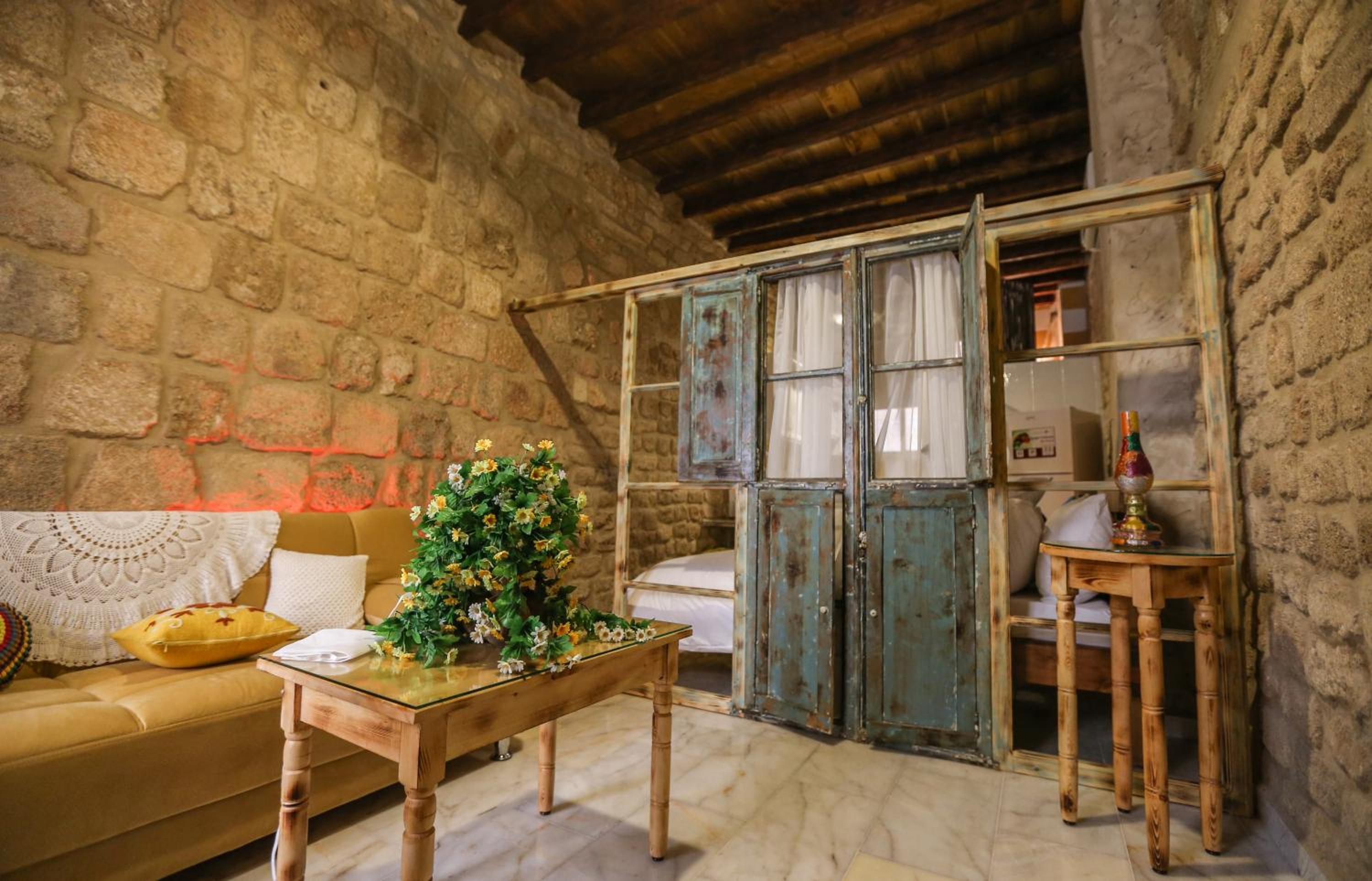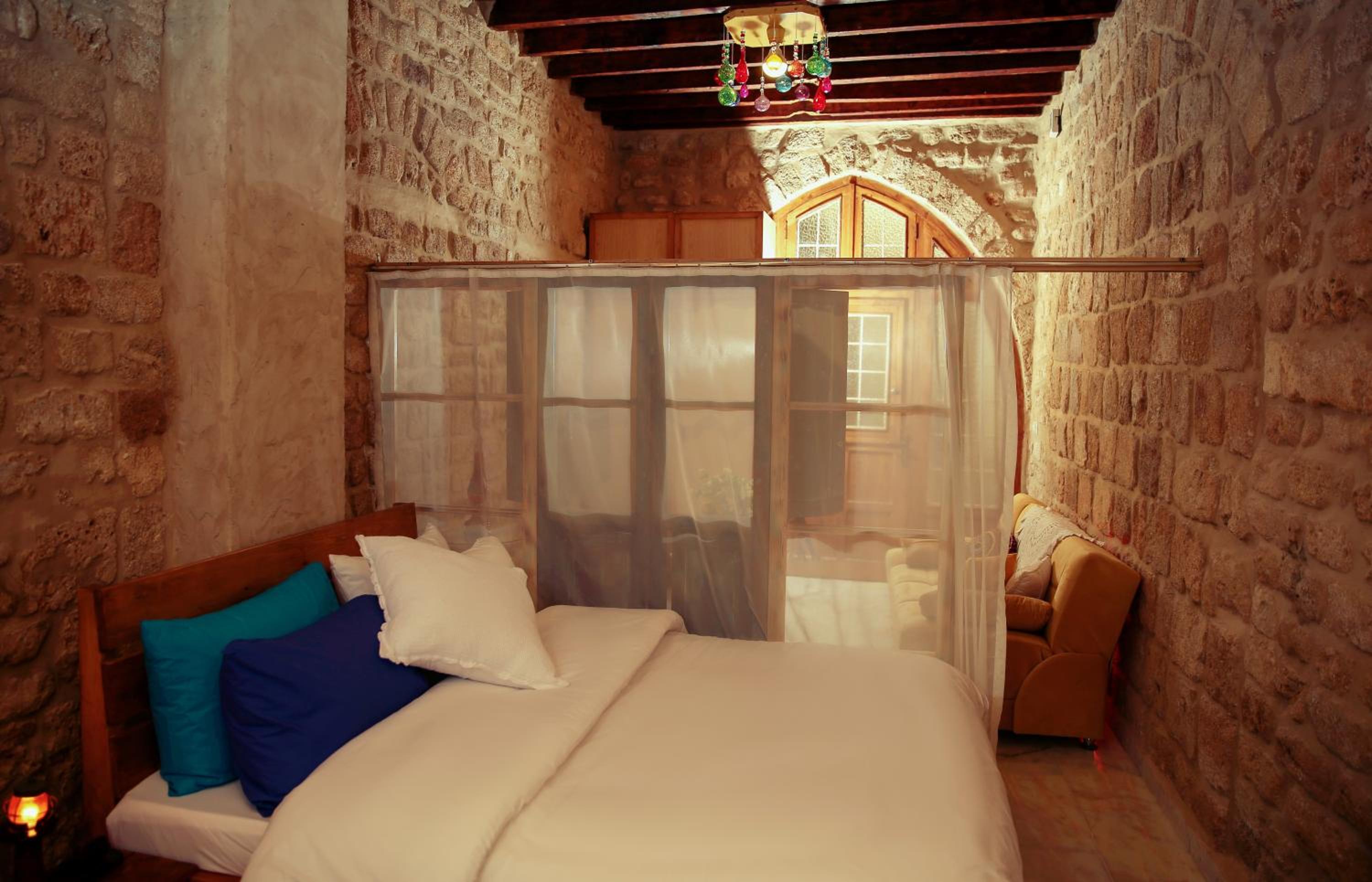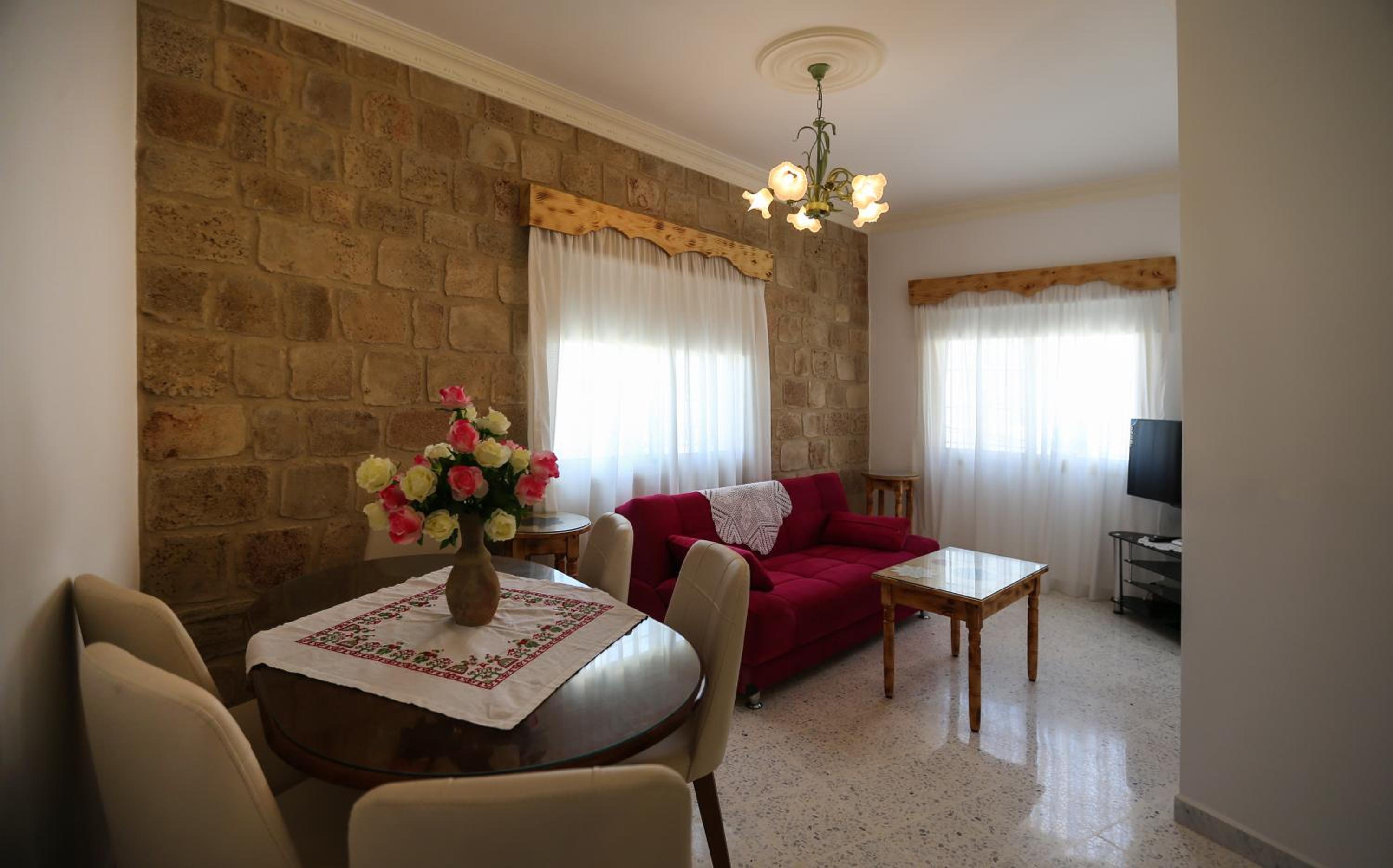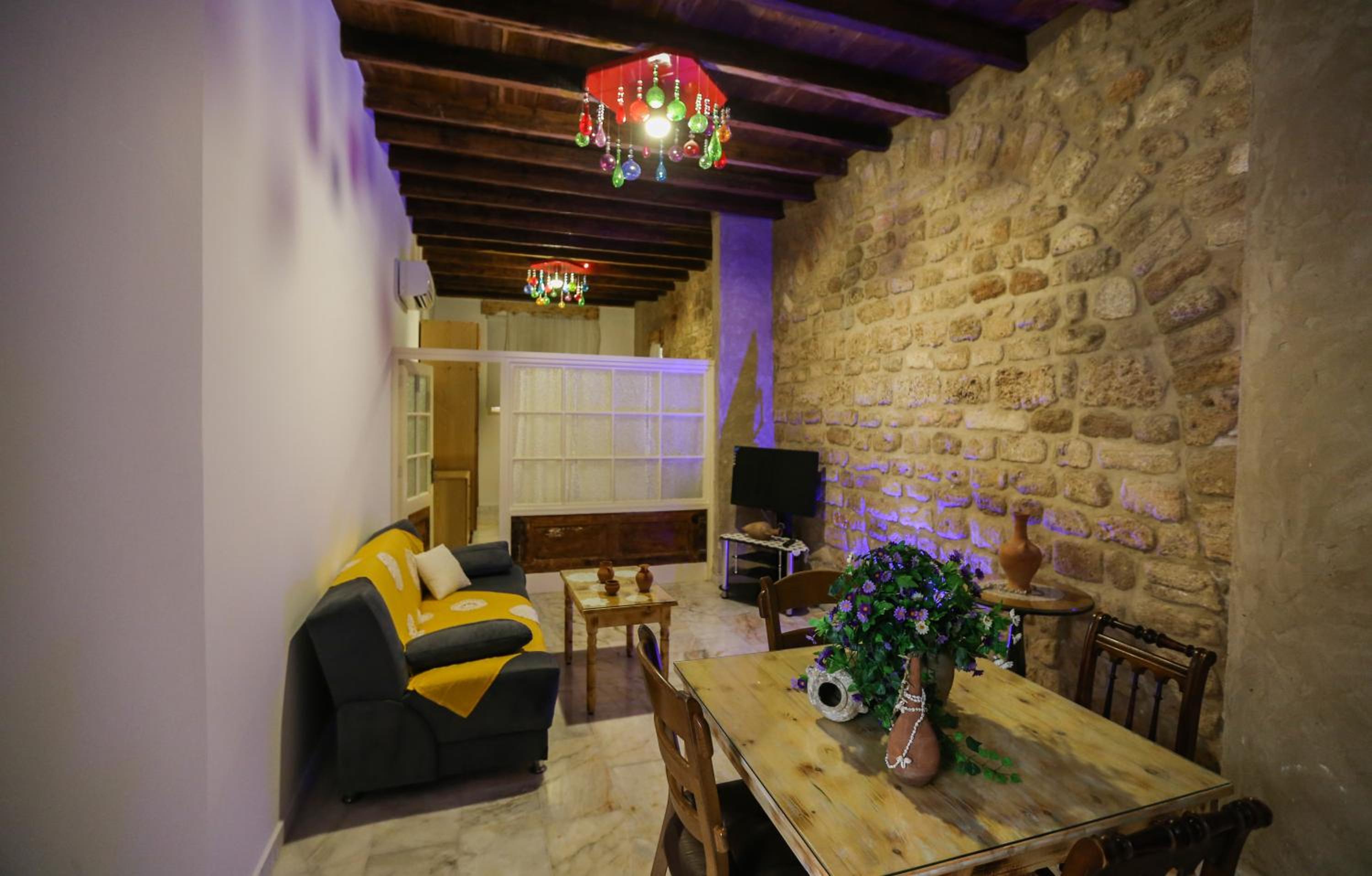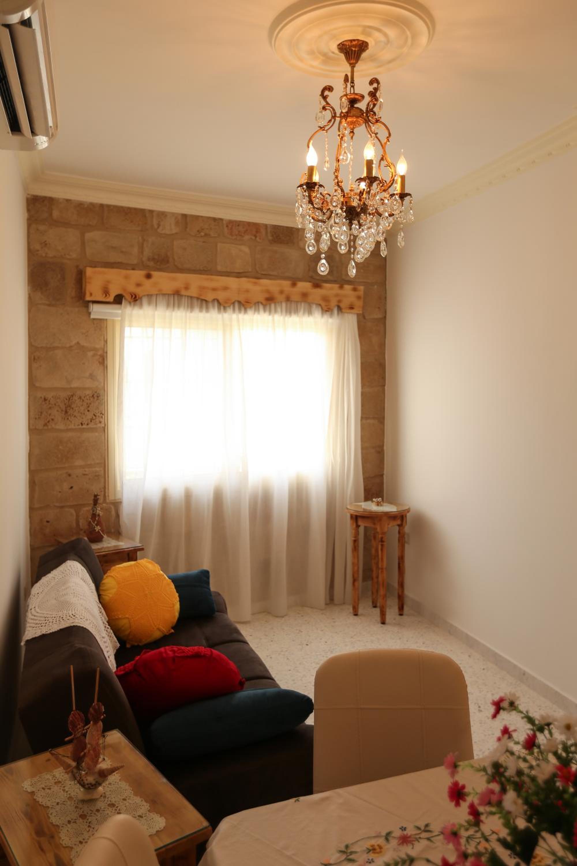In the heart of the Christian quarter.. A converted 14th Century building with many of the old Phoenician features. Our taxi was met by the owner with very short walk to the accommodation. Very friendly. I slept in a double bed, and my friend in a sofa bed which was made up by staff. All facilities needed for a comfortable stay, Kitchen, bathroom, shower etc. Free Wifi. Some local shops. Very close to old port with many restaurants. I will come back here again.