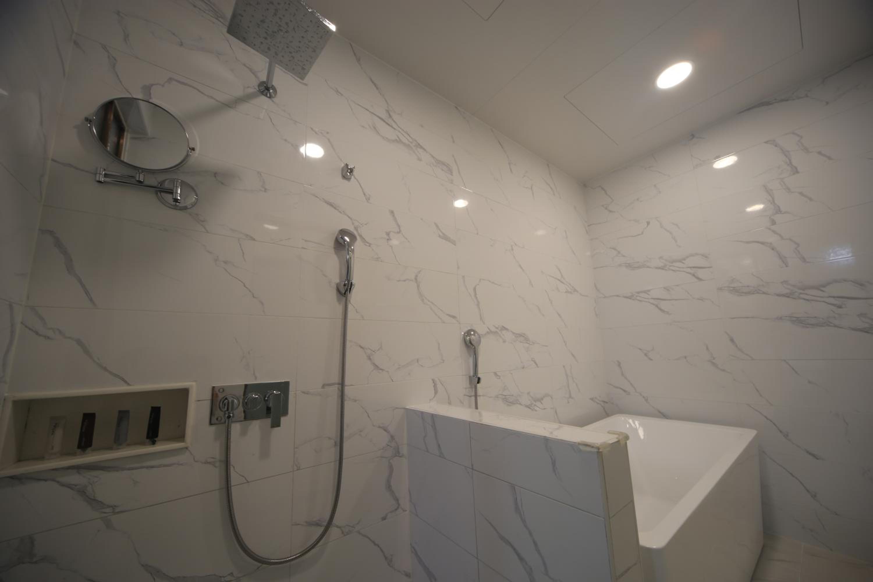 My room had a wonderful big bathtub and shower facility. Rooms seemed completely soundproof ( important because there is a busy highway outside). The rooms were spotlessly clean each day. I could watch some free movies on the TV and I appreciated the tea and coffee making facilities,