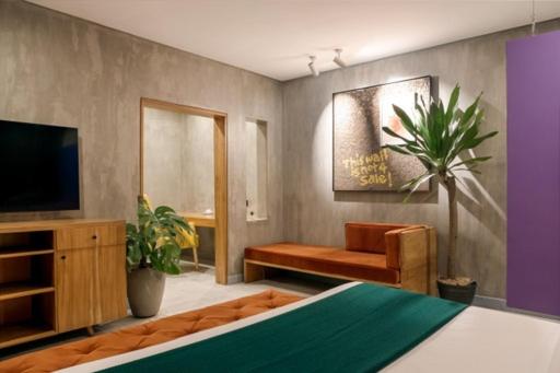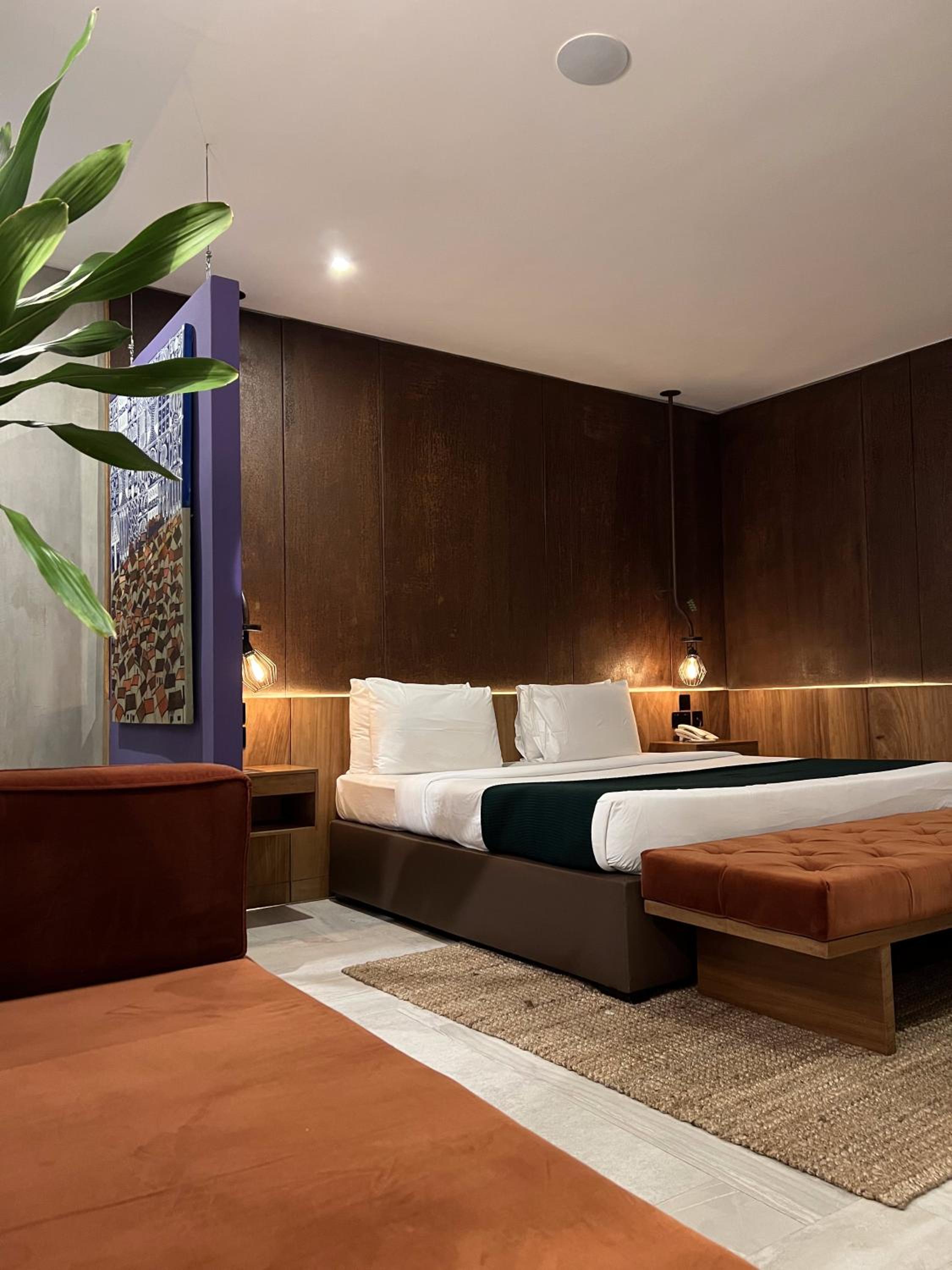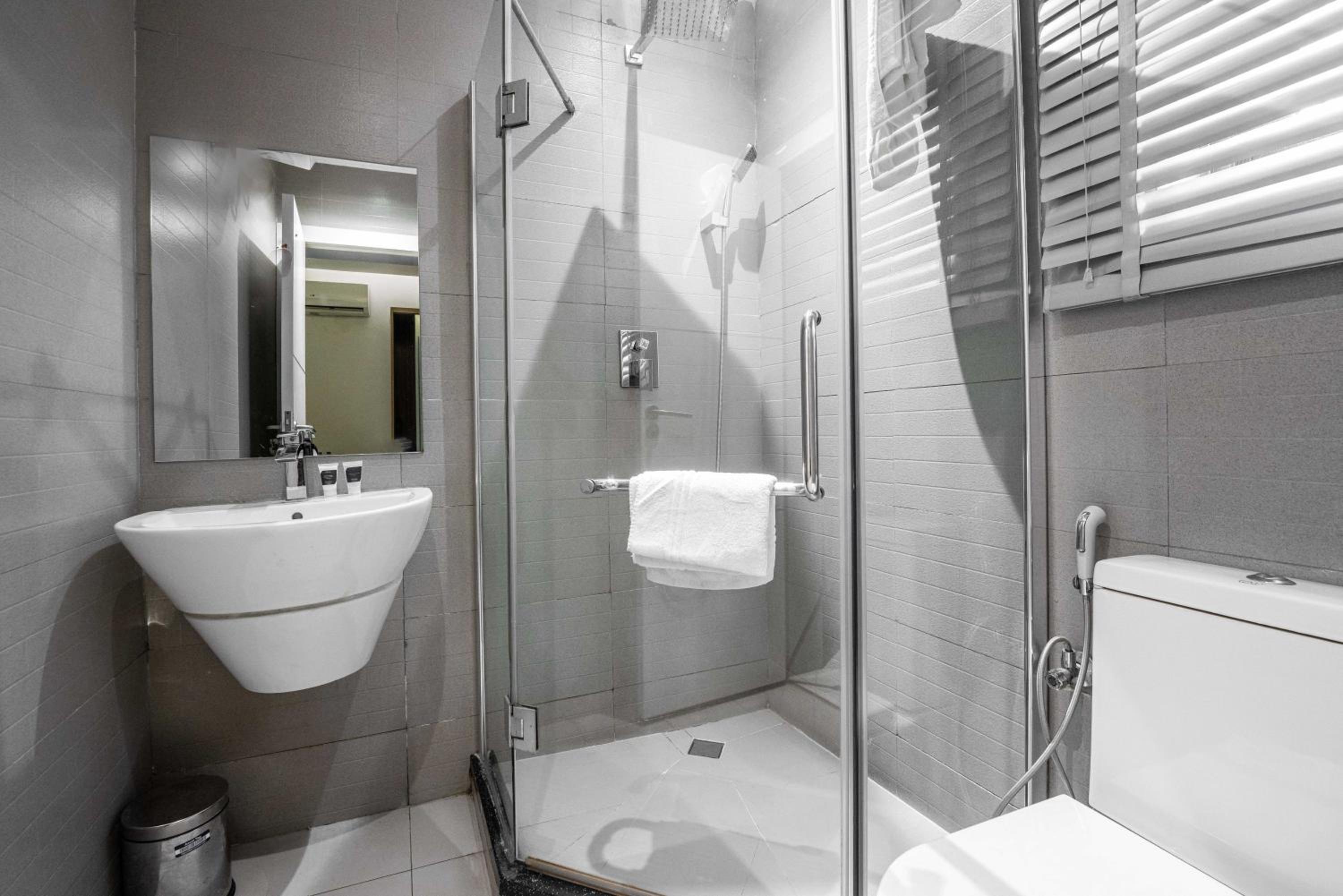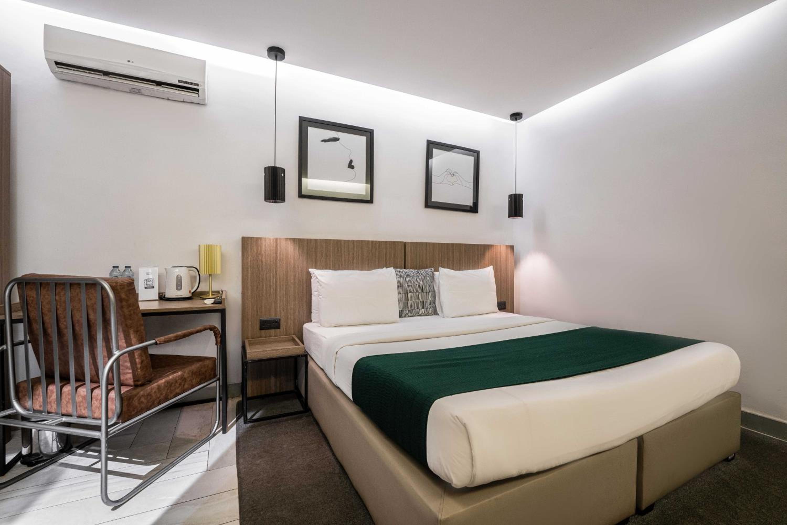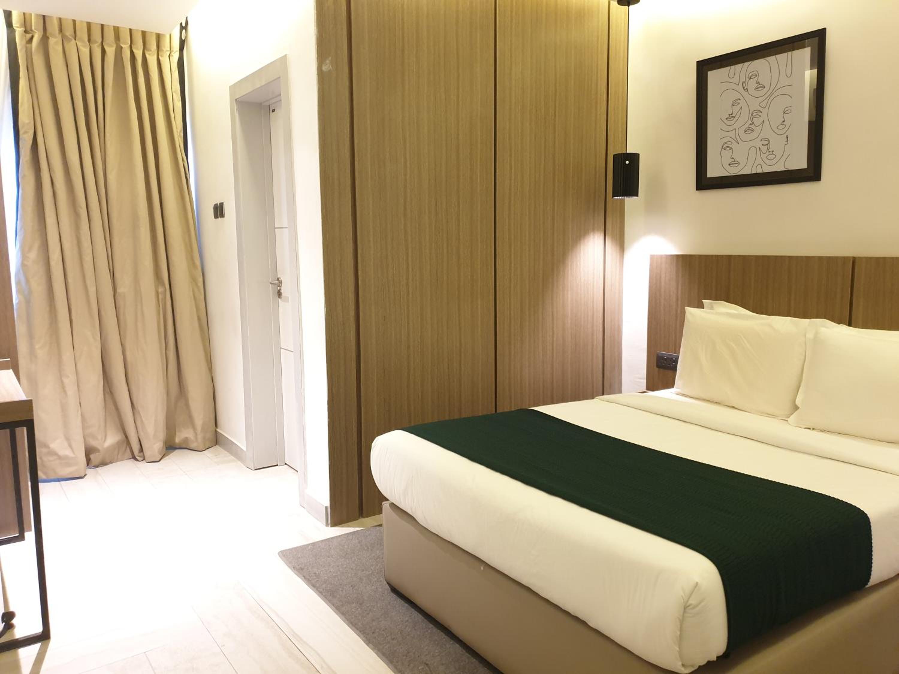 The Borough Lagos offers elegant rooms with modern amenities including air conditioning, flat-screen TVs, and free WiFi. Guests can enjoy a comfortable stay with room service and a 24-hour front desk available.