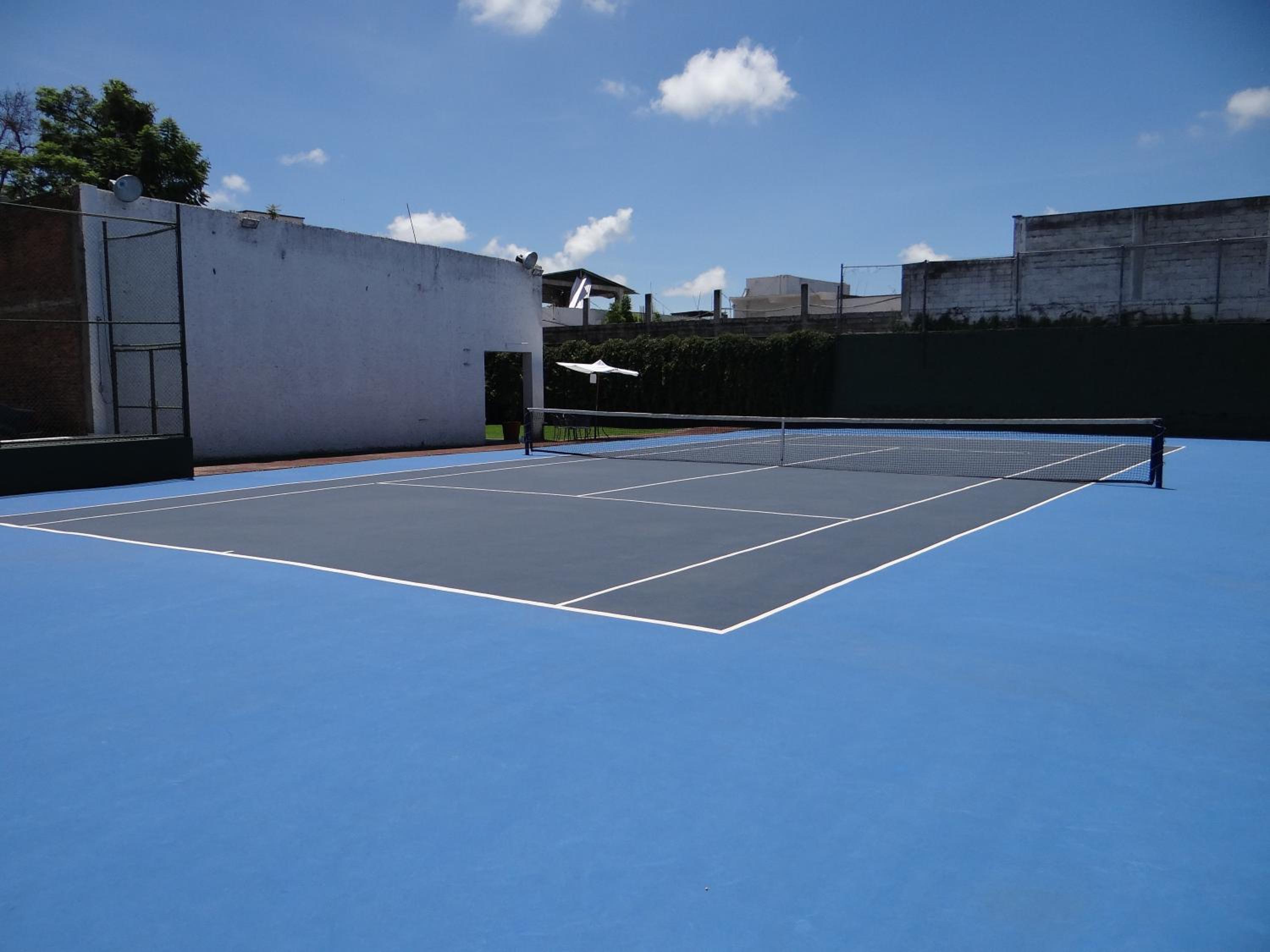 Las albercas y cancha de tennis