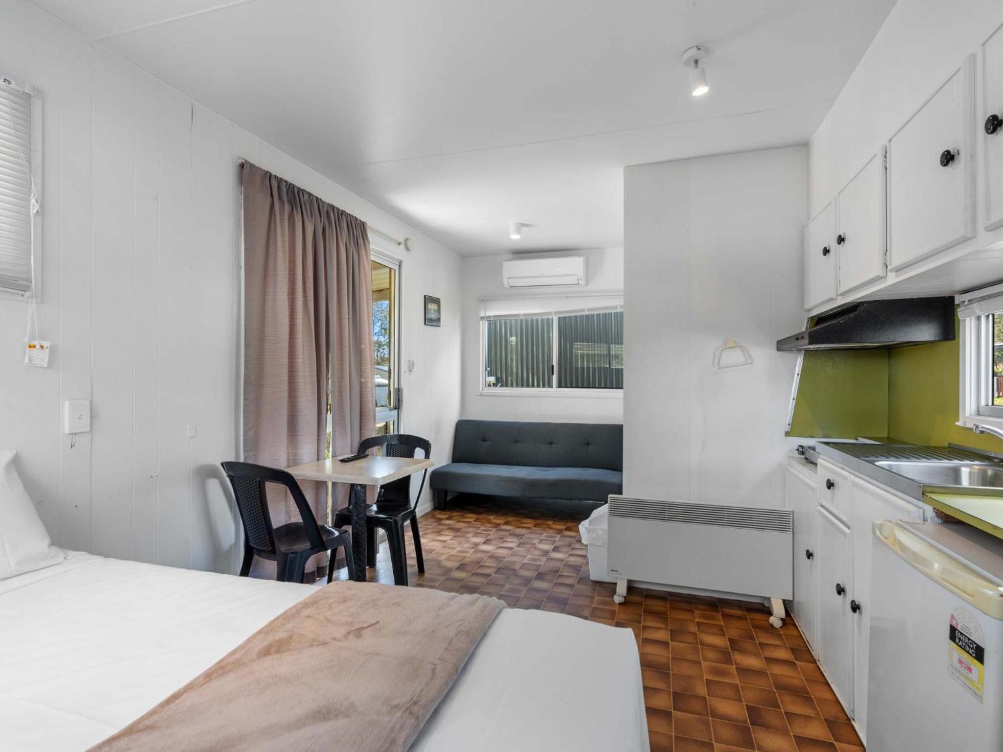 The staff were friendly, the park was neat and tidy. The cabin was comfortable.