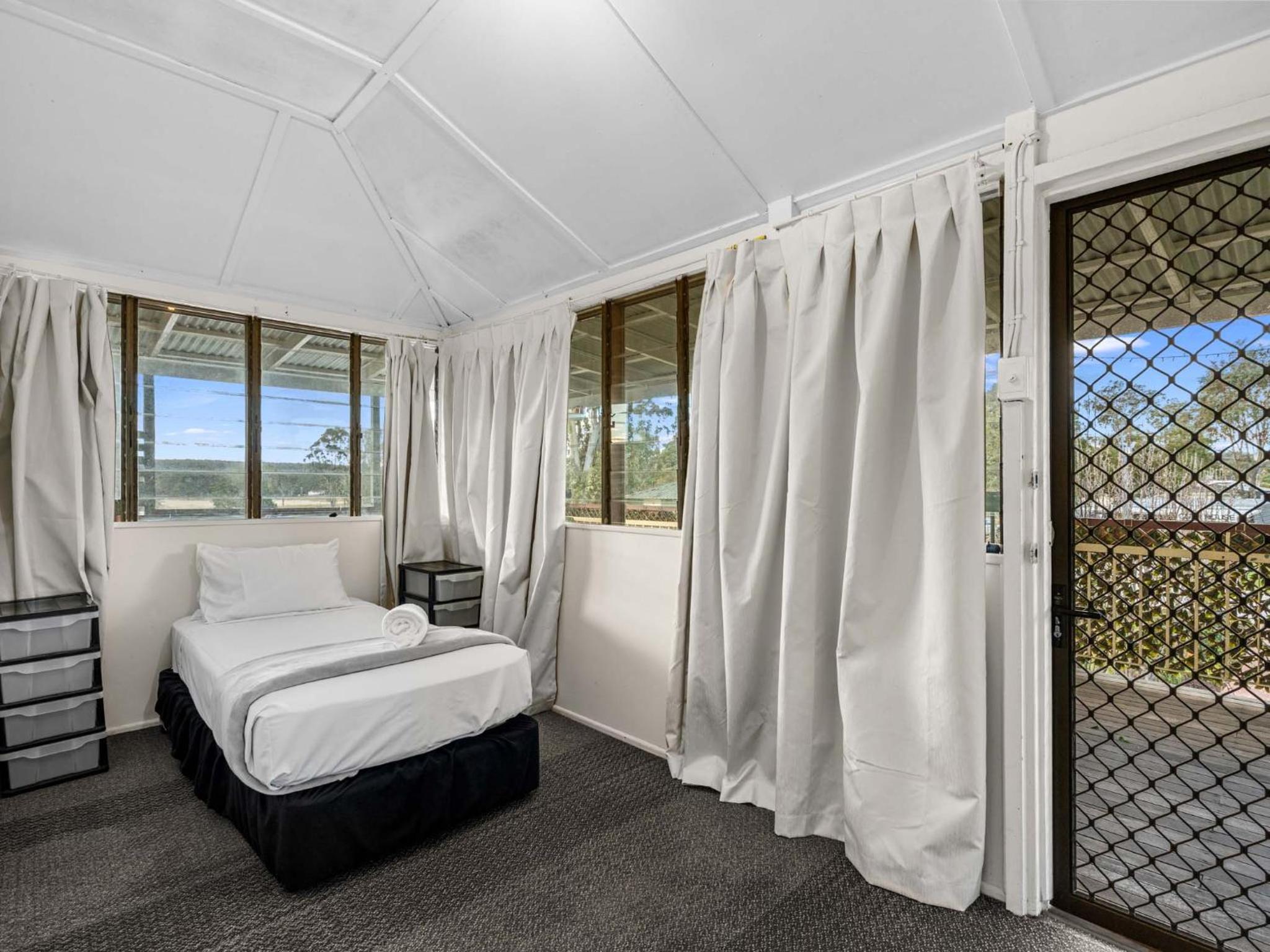 Luxurious Amenities: Enjoy free bikes, private parking, an outdoor pool, and a garden at Crows Nest Tourist Park. Indulge in the on-site restaurant, shared kitchen, lounge, and free WiFi.