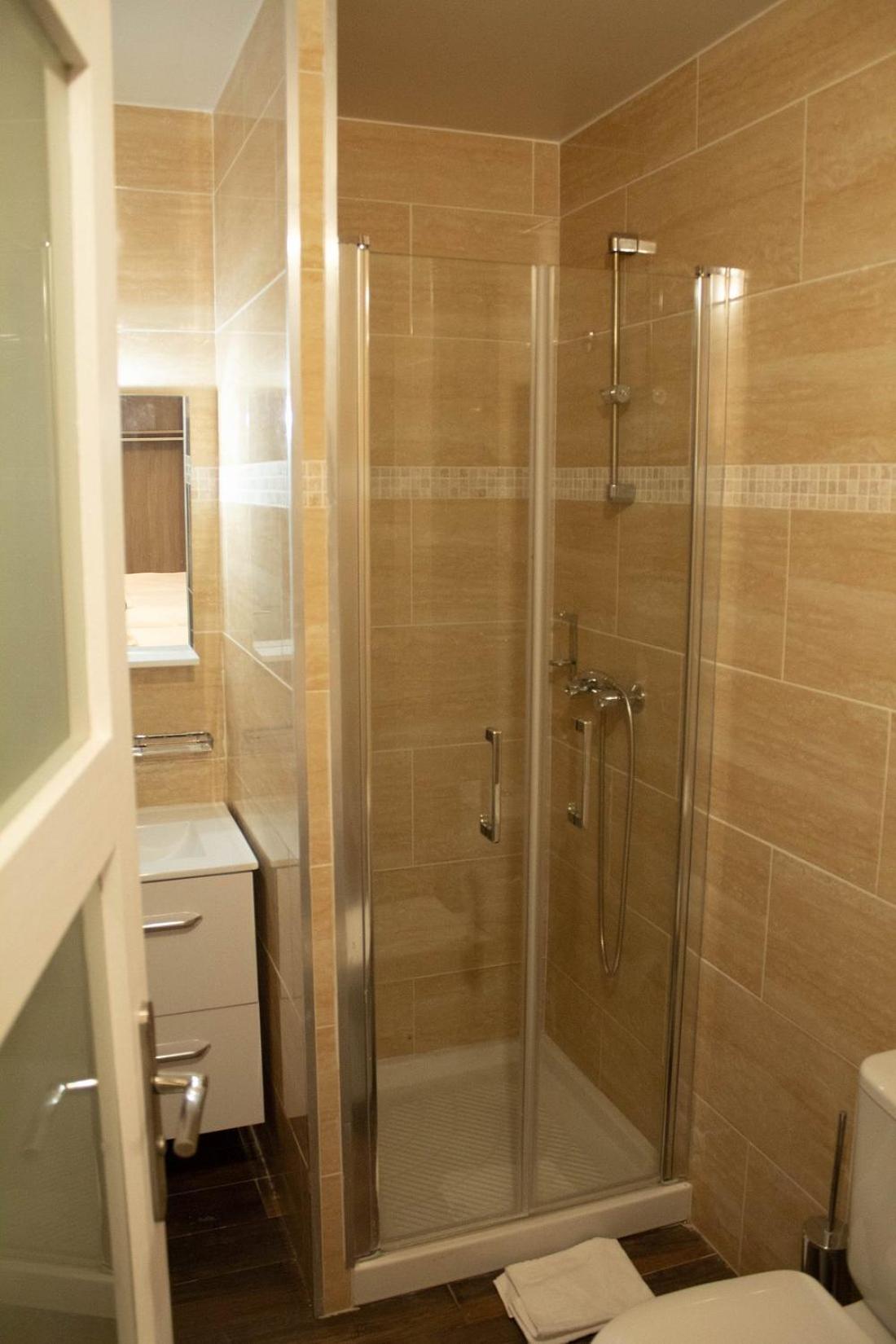 typisch französisches Frühstück, Zimmer für pariser Verhältnisse und Funktion (Schlaf- und Duschstelle) voll ausreichend
